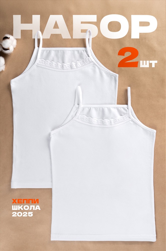 Набор маек для девочки, 2 шт — удобное и практичное решение на каждый день. Маечки на бретелях украшены кружевом с рисунком Котики, смотрятся мило и аккуратно. Комплект белых маек выполнен из мягкого турецкого хлопка, приятные к телу и комфортные в использовании.