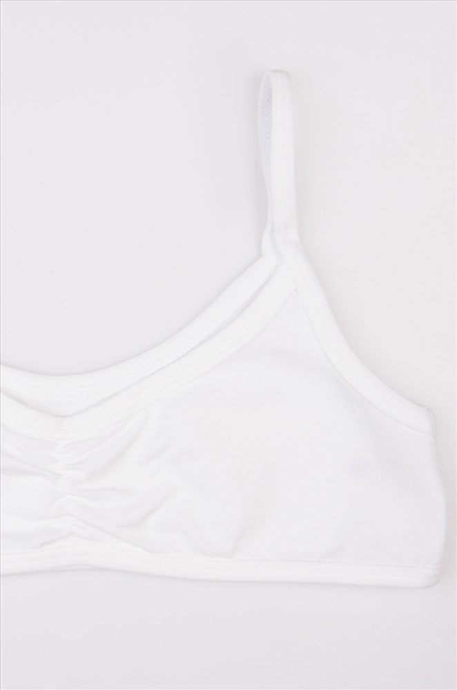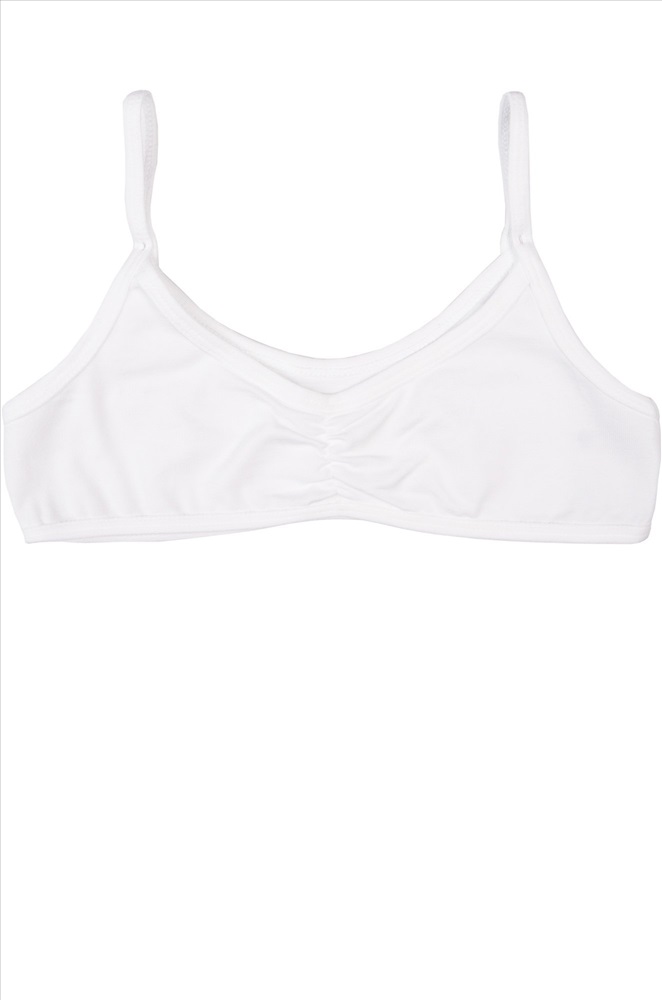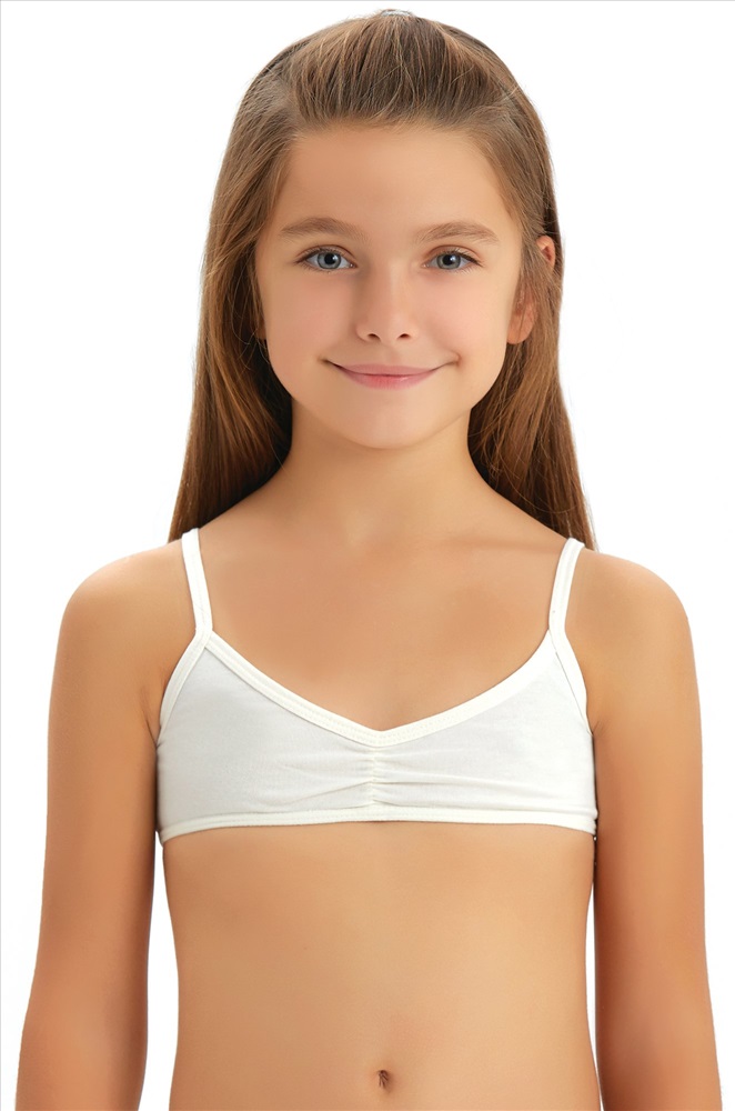 Подростковый бюстик белого цвета мягкий и комфортный, почти неощутимый под одеждой. Все швы детского бюстгальтера гладкие и не будут беспокоить ребенка во время активных занятий, в проймах эластичные бейки. Трикотажный топ обеспечит комфорт во время спорта, гимнастики, танцев.