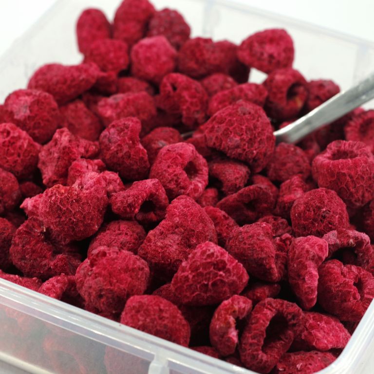Сублимированные продукт благодаря технологическим особенностям обработки сохраняет в себе все качества свежего плода. Имеет насыщенный вкус, который доступен в любое время года.Сублимированные целые ягоды малины используется в качестве добавки и декора в кондитерских изделиях.