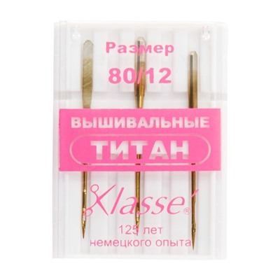Вышивальные (K8) - идеально подходят для декоративной отстрочки нитками район, полиэстер, хлопковыми или акриловыми вышивальными нитями. Никелированное покрытие и большое ушко позволяют гладкой нити скользить, на большой скорости, не обрываясь.Доступные размеры: 75/11, 90/14. Размер 80/12 есть в титановых супер крепких иглах.