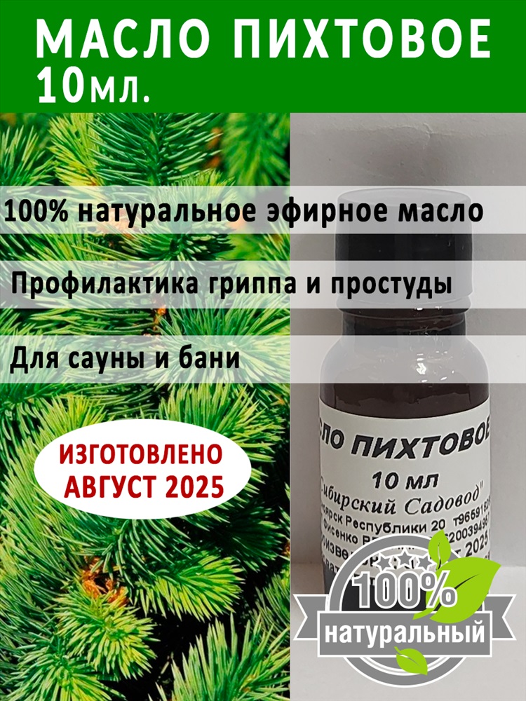 Приемущества нашего масла: Масло изготавливается по ГОСТ ISO 10869-2015. на оборудовании из пищевой нержавеющей стали. Производство в находится в экологически чистом районе Красноярского края. Качество гарантируем. Масло пихтовое это натуральное эфирное масло, получаемое из хвои пихты. Оно обладает освежающим ароматом и широко используется в ароматерапии для создания атмосферы спокойствия и умиротворения. Пихтовое масло может быть использовано в аромалампе для ароматизации помещений, а также добавлено в массажное масло для расслабляющего массажа. Его бодрящий аромат может помочь улучшить концентрацию и снять усталость. Пихтовое масло, это 100% натуральное эфирное масло, оно имеет антисептическое противовоспалительное и обезболивающее действие. Испарения масла пихты, особенно в горячем воздухе бани, идеальное средство для лечения любых заболеваний верхних дыхательных путей, в том числе бронхов и лёгких. Объем 10мл Комментарии к товару
