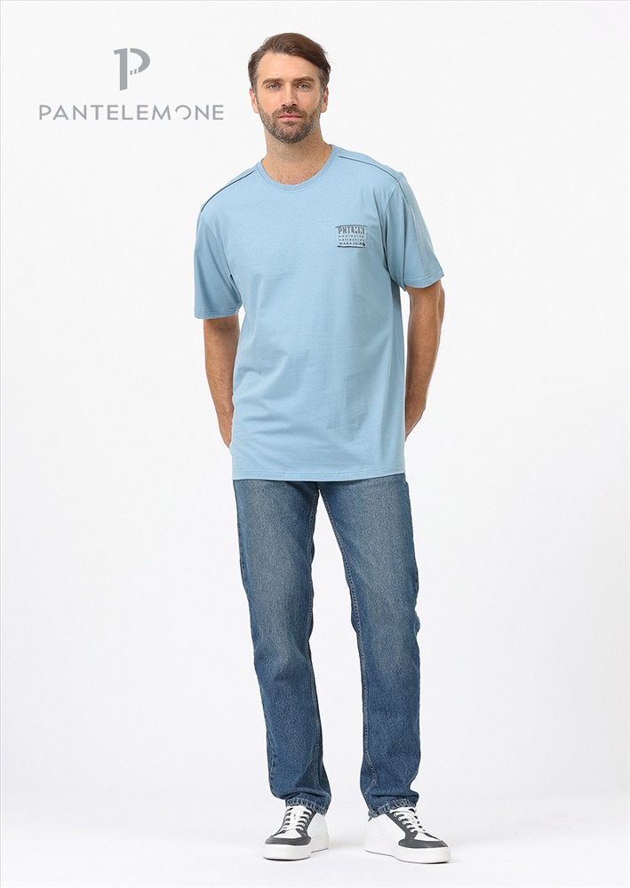 Производитель: PanteLemone Футболка с втачным рукавом, свободного силуэта, с круглым вырезом горловины. Плечевые швы и швы на рукавах открытые. На передней детали нашивка с принтом и хольнитеном.