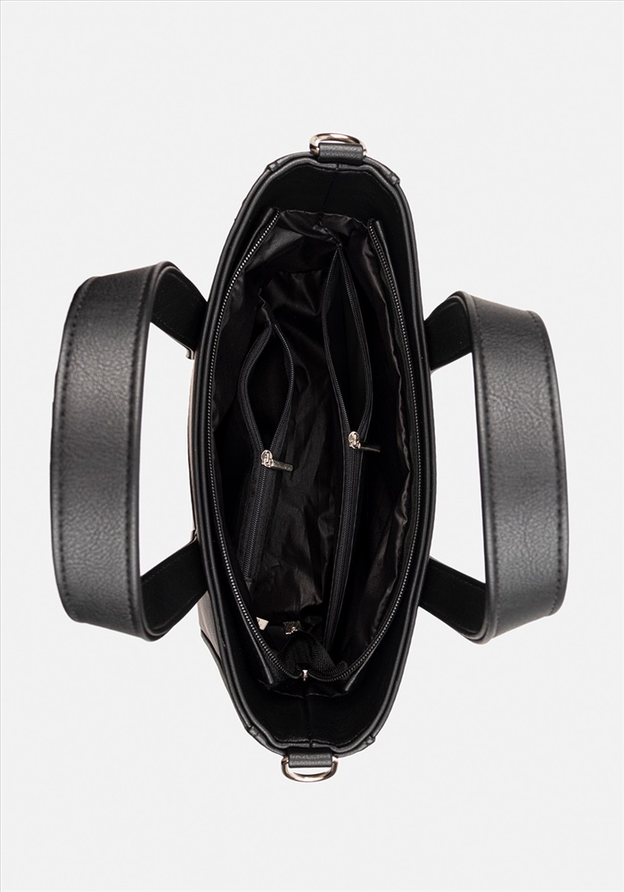 Сумка женская. Задняя стенка: карман на молнии. 1 отделение . Внутри: средник на молнии, 1 карман на молнии, карман для мобильного телефона . Заплечный ремень (84-104 см).
