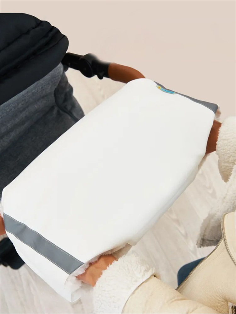 Прекрасная муфта из экокожи с тёплым и мягким меховым подкладом. Застегивается на молнию взади, впереди регулируется липучкой. По бокам имеются светоотражающие элементы. Внутри есть специальная меховая вставка, которая оборачивается вокруг ручки коляски, чтобы держаться за приятный и тёплый мех.