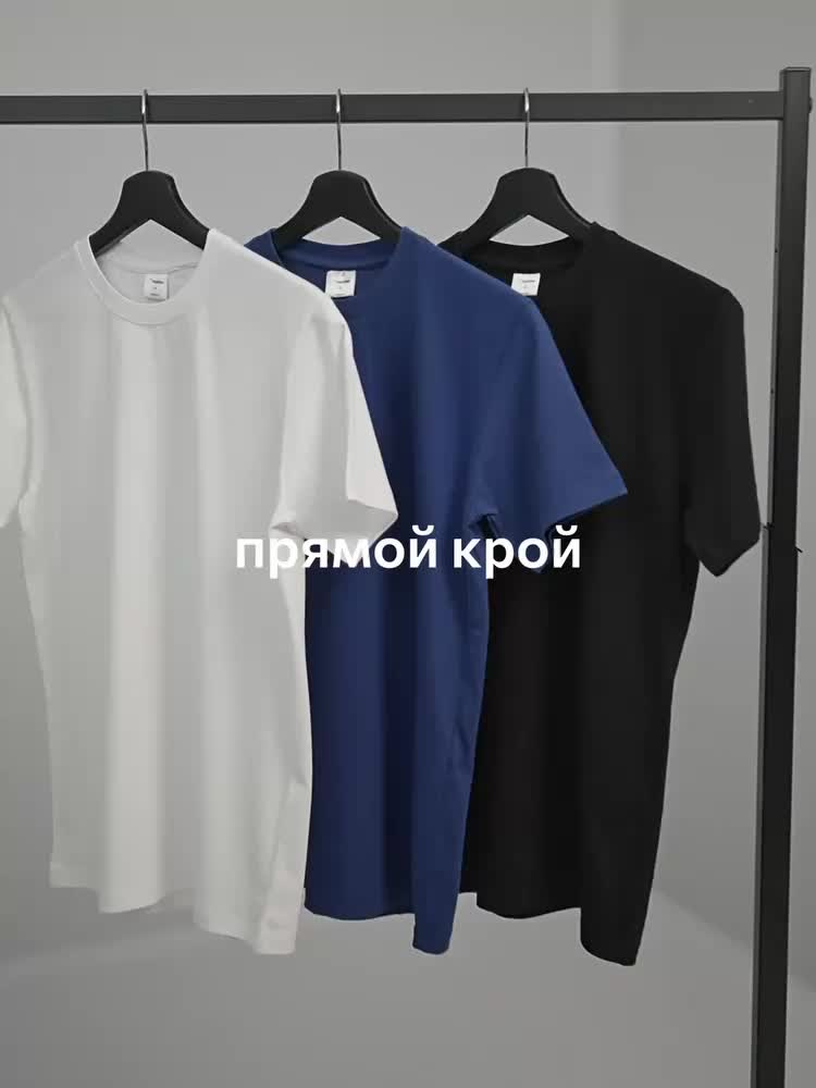 Набор из 3 мужских футболок представлен в разных цветах: синий, белый, чёрный. Преимущества: – 100% хлопок — дышащая и мягкая трикотажная ткань; – прямой крой — сидит свободно, не сковывает движения; – хлопковая кулирная гладь — гладкая текстура, приятная на ощупь; – классический круглый вырез — универсально и аккуратно; – набор из трёх цветов — легко комбинировать под настроение; – подходит для многослойных образов или самостоятельно. Идеальны для офиса в стиле smart casual, прогулок или отдыха. Чёткий выбор для мужчин на каждый день без компромиссов в удобстве и стиле. Рост модели 172 см, параметры: объем груди 107, объем талии 85, объем бедер 102 см. На нем размер 52.