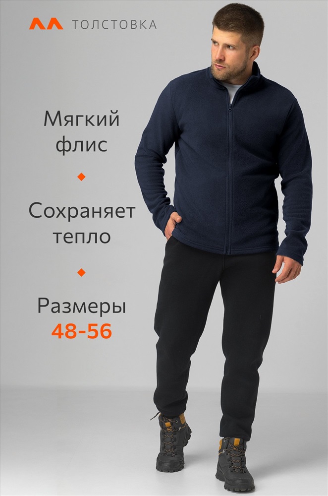 Мужская флисовая толстовка на молнии подарит отличное настроение в любое время года! Демисезонная зипка в универсальном базовом синем цвете станет незаменимым спутником для повседневных дел и активных приключений. Однотонная толстовка выполнена из трикотажной ткани флис, которая дарит невероятный уют и комфорт. Трикотаж отлично сохраняет тепло, при этом позволяя коже дышать, что делает кофту на замке идеальной для прохладных дней. Прямой крой и ворот-стойка делают мастерку идеальным выбором для мужчин, которые ценят удобство и современный стиль. Удобные боковые карманы добавляют практичности, позволяя согревать руки в прохладную погоду. Для хранения необходимых мелочей предусмотрен внутренний карман. Теплая флиска для мужчин подходит на каждый день, а также станет отличным выбором для активного отдыха на природе, занятий спортом или просто для домашних дел. Модель Артем, рост 172 см, параметры 107-85-102 см. На нем размер 52.