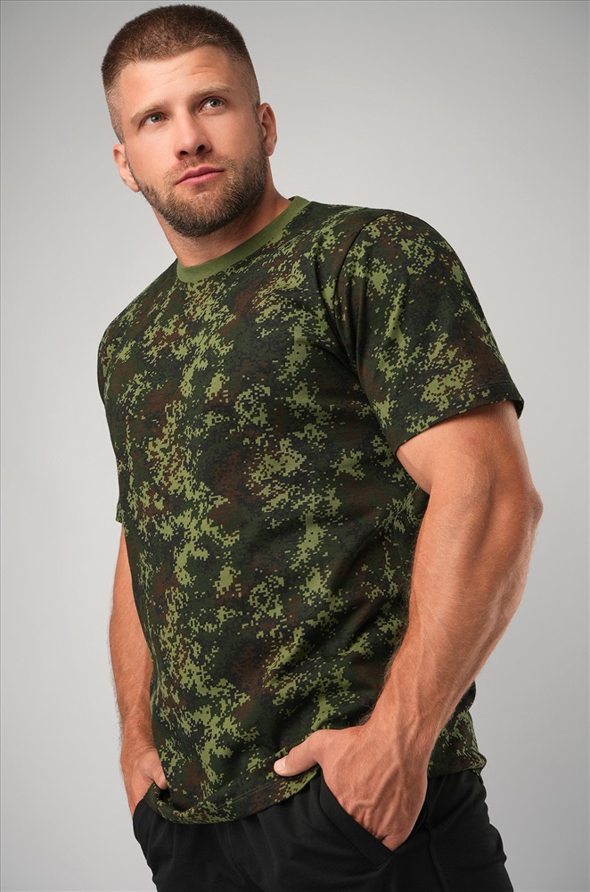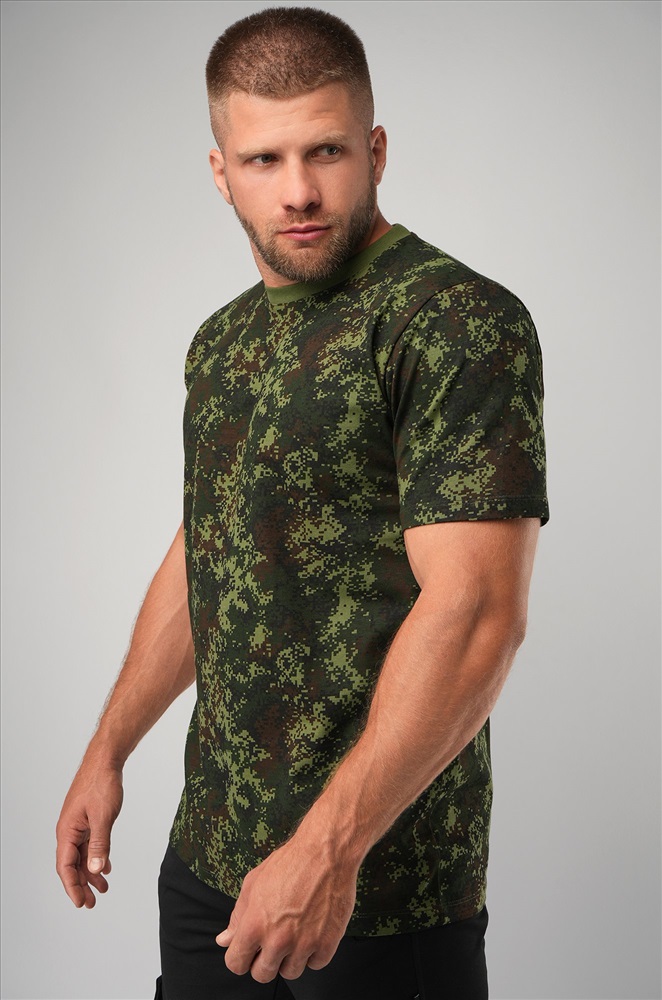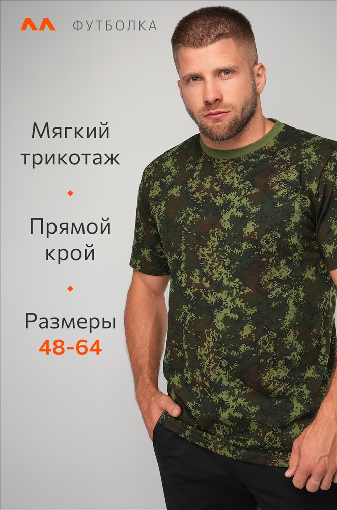 Хлопковая футболка с принтом цифра для мужчин выполнена в темно-зеленой расцветке. Камуфляжная футболка идеальна для походов, рыбалки, охоты и туризма. Стильная футболка подойдет для поездок на природу, страйкбола и использования в рабочих профессиях. Тактическая футболка приятна на ощупь и отличается комфортом, что особенно важно при активном образе жизни. Защитный рисунок не боится стирок, надолго сохраняет первоначальный вид и яркость. Футболка военный камуфляж отлично подойдет в качестве подарка для мужчин на 23 февраля. Армейская футболка из мягкого трикотажа – идеальный выбор для военных, охотников и рыбаков. Широкий размерный ряд, есть большие размеры. Модель Артем, его рост 172 см, параметры 113-82-100 см. На нем футболка 52 размера.