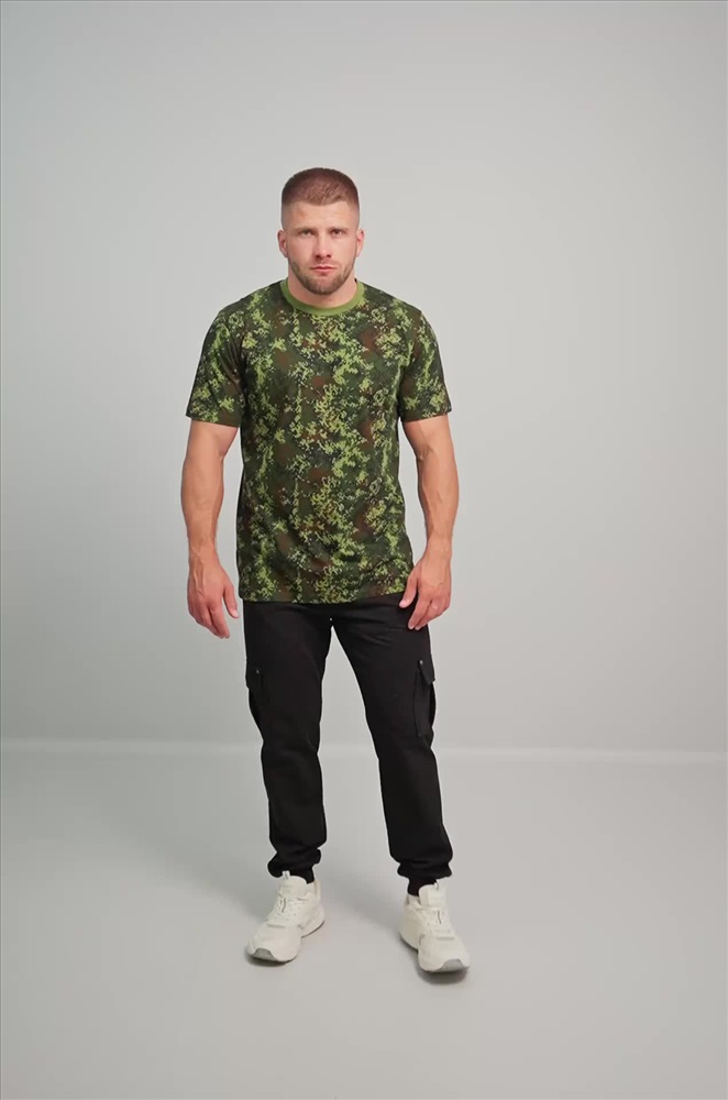 Мужская футболка в стиле милитари выполнена из 100% хлопка, ткань кулирная гладь. Трикотажная футболка прямого кроя с усиленным воротом – идеальный вариант для образов на каждый день.