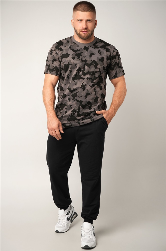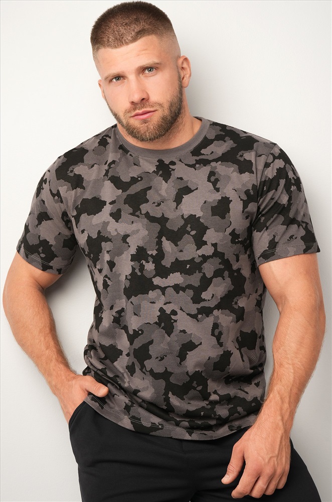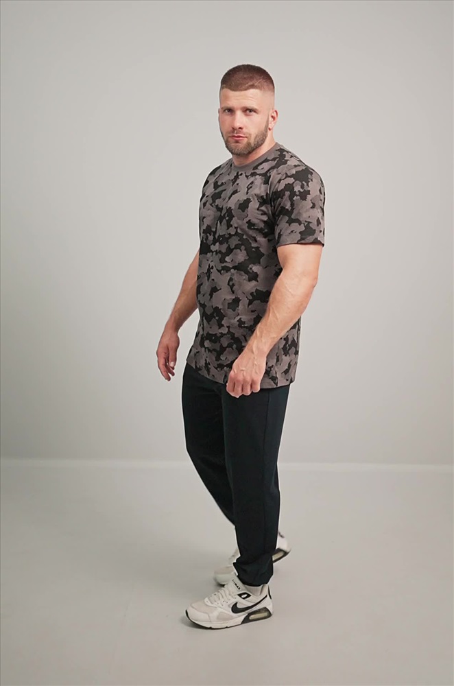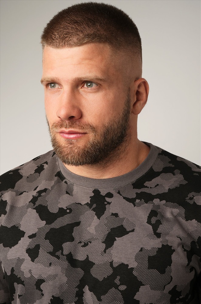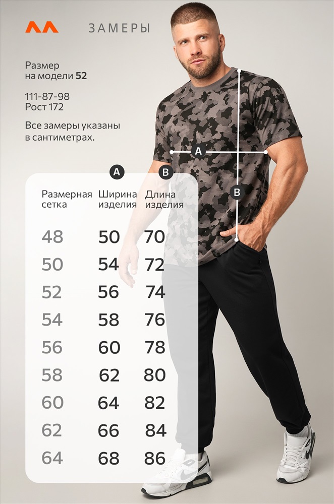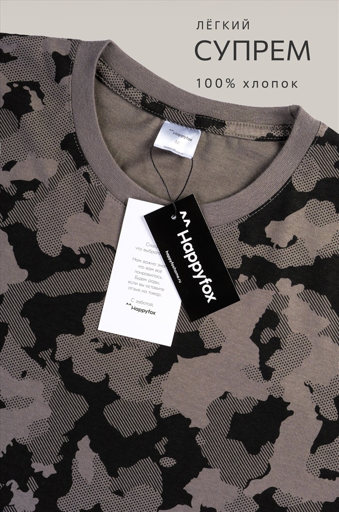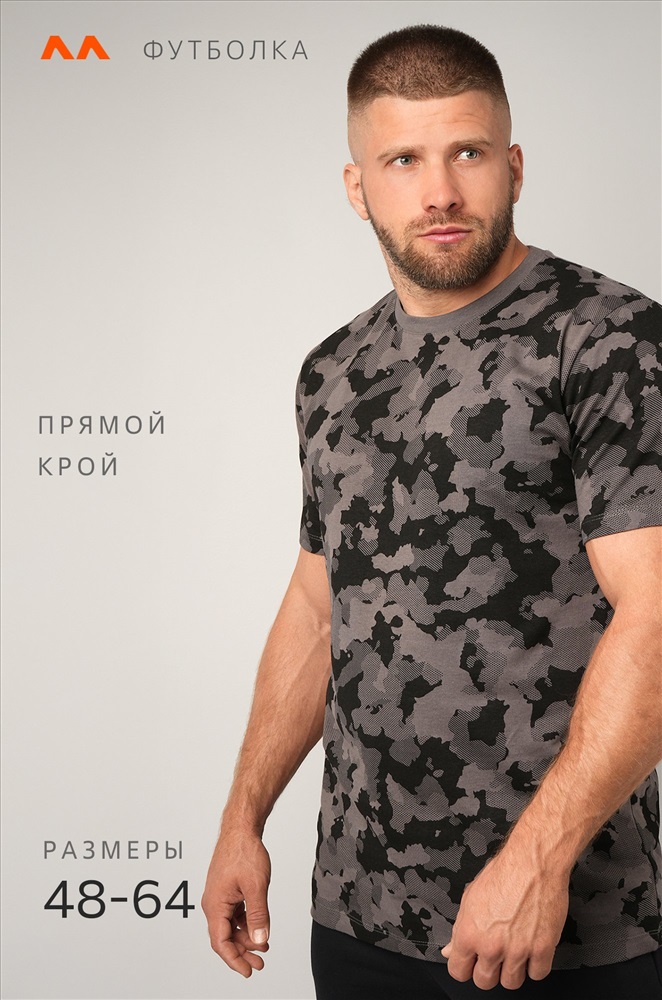 Преимущества: – 100% натуральный хлопок; – усиленный ворот; – мягкий и дышащий трикотаж; – камуфляжный принт флора не боится стирок, надолго сохраняет первоначальный вид и яркость; – есть большие размеры. Классический прямой крой и круглый вырез делают футболку удобной и практичной для мужчин. Серая военная футболка отлично подойдет в качестве подарка. Рост модели 172, параметры: объем груди 111, объем талии 87, объем бедер 98. На нем размер 52.