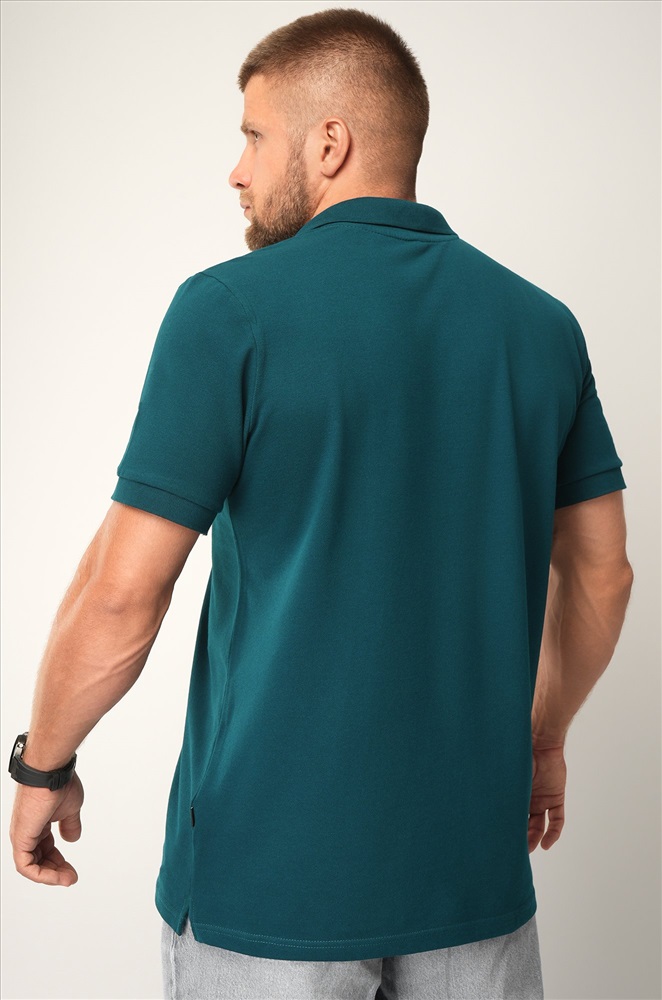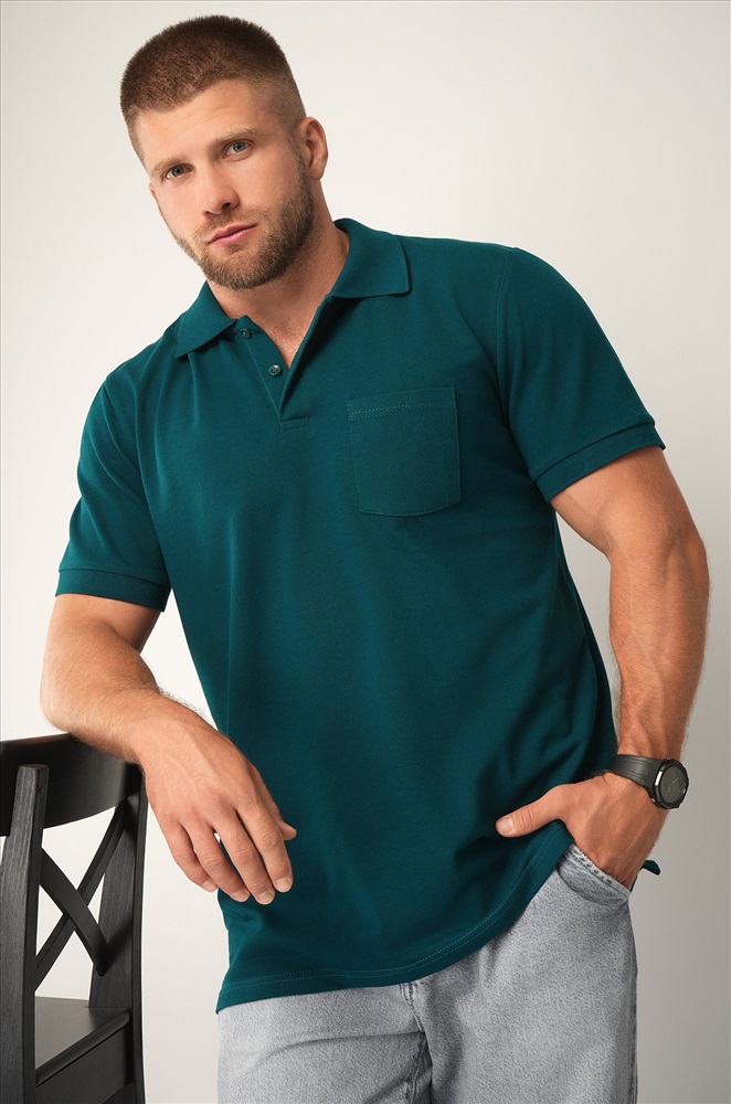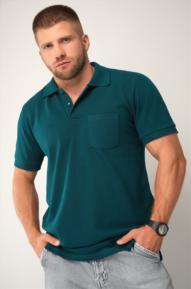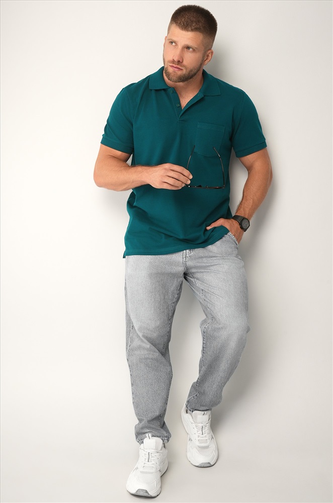 Футболка поло цвета морской волны — лаконичный фаворит мужского гардероба, который всегда к месту. Идеальный баланс между комфортом и стильным минимализмом для повседневных образов.
