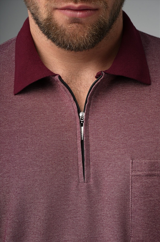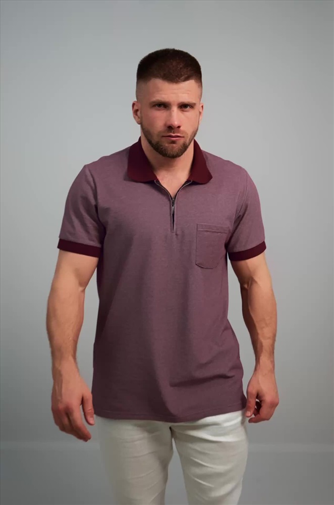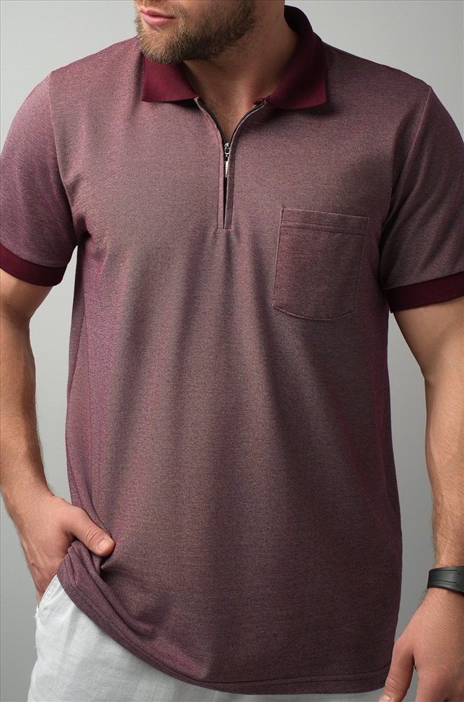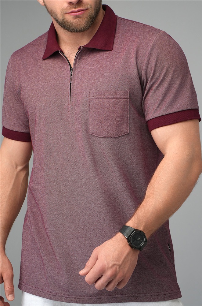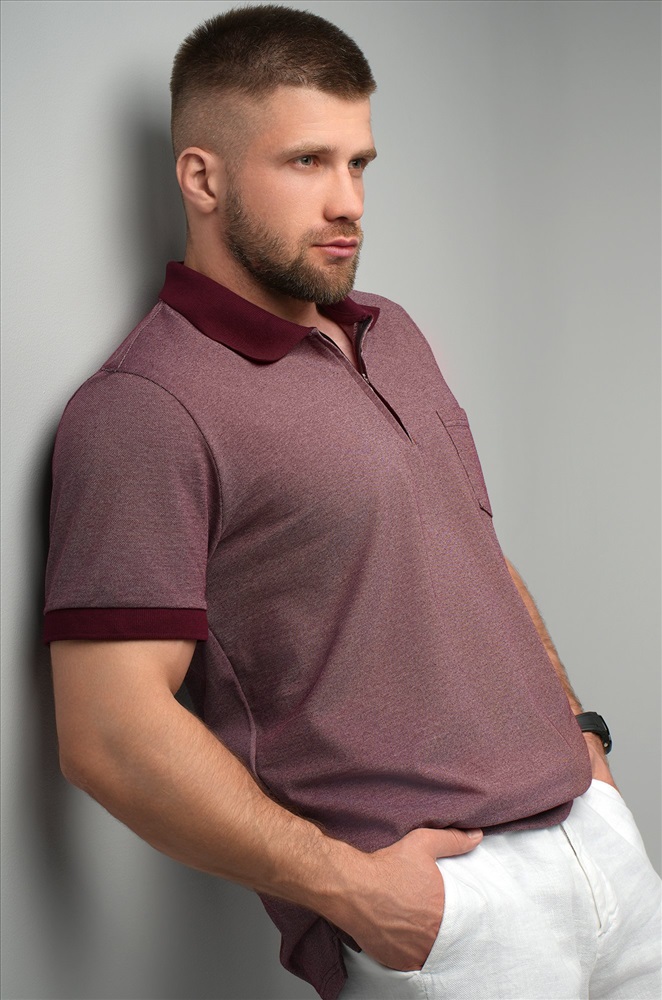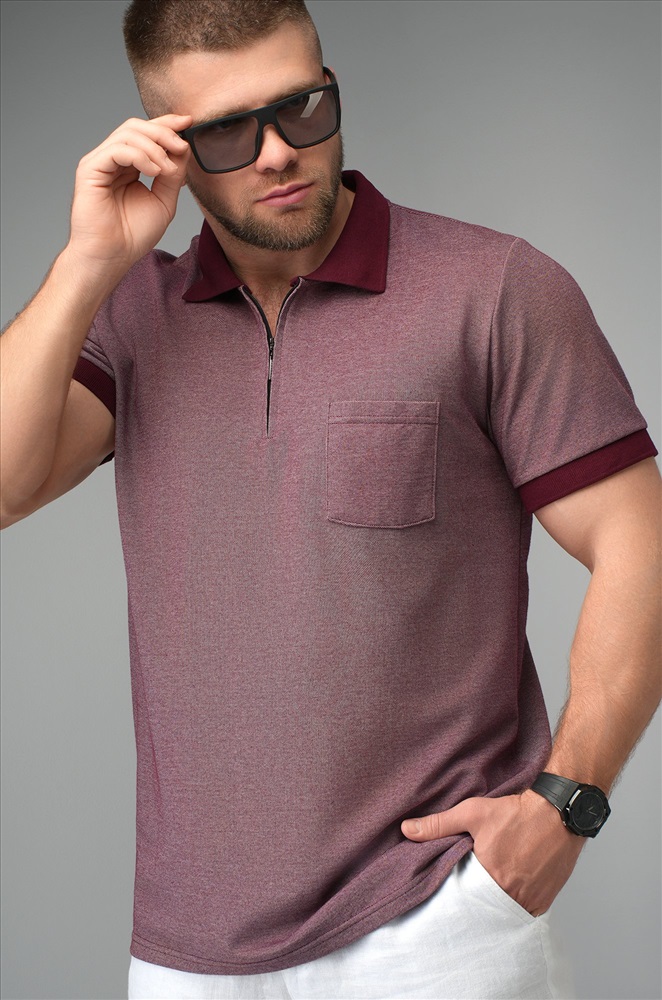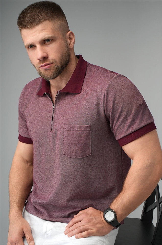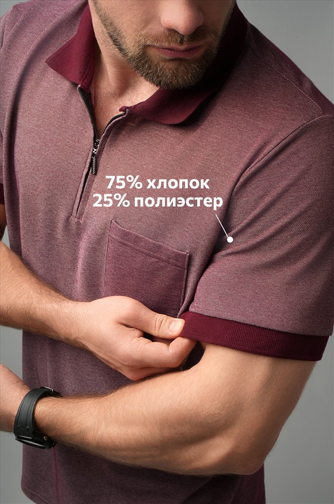 Преимущества: — хлопковый трикотаж пике средней плотности 180 г/м2; — эффектная текстура ткани; — облегающий крой подчёркивает фигуру; — лаконичный воротник на молнии и нагрудный карман; — воротник и манжеты чёрного цвета создают выразительный акцент; — бордовое поло на замке подходит для образов в стиле олд мани. Тенниска для мужчин — базовый элемент гардероба. Трикотажное поло для мужчин дополнит как строгие, так и повседневные образы. Модель Артем, его рост 172, параметры: 111-87-98. На нем размер 52.