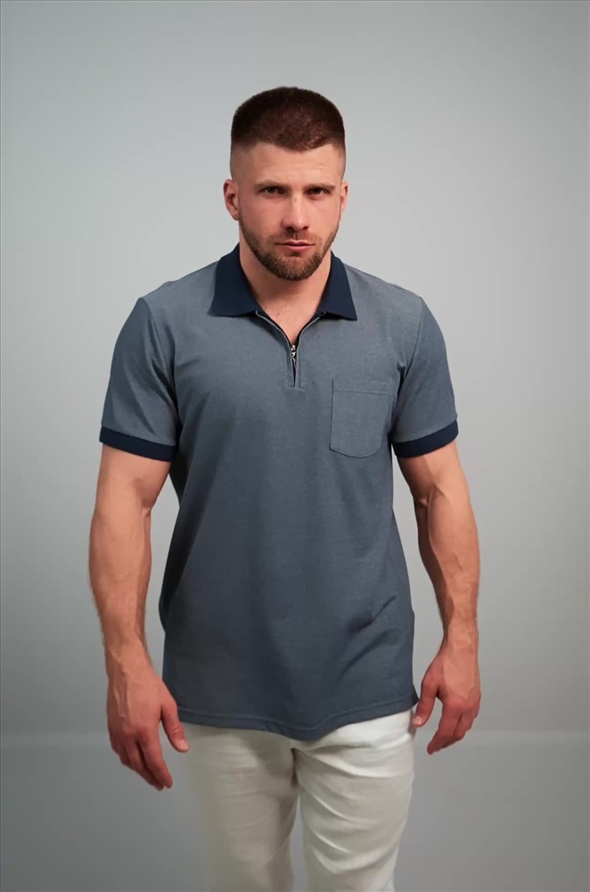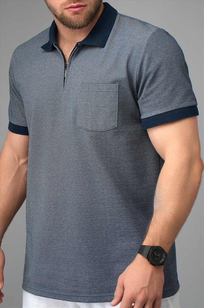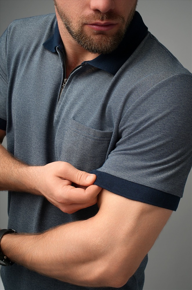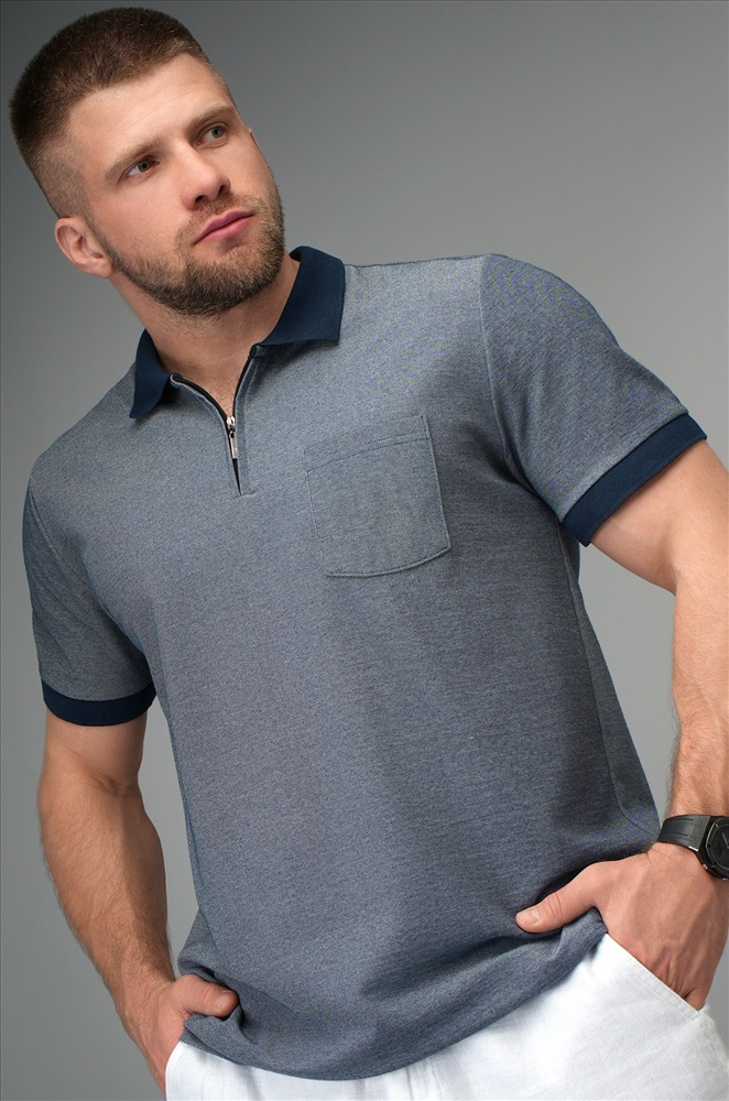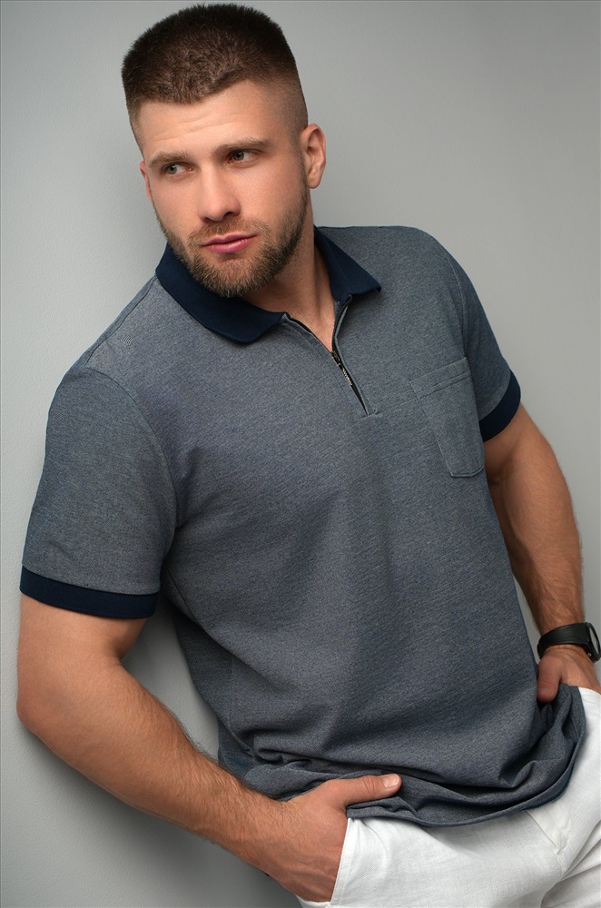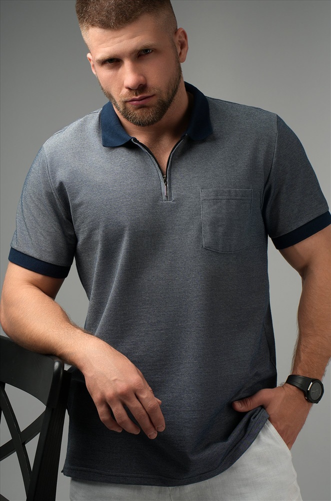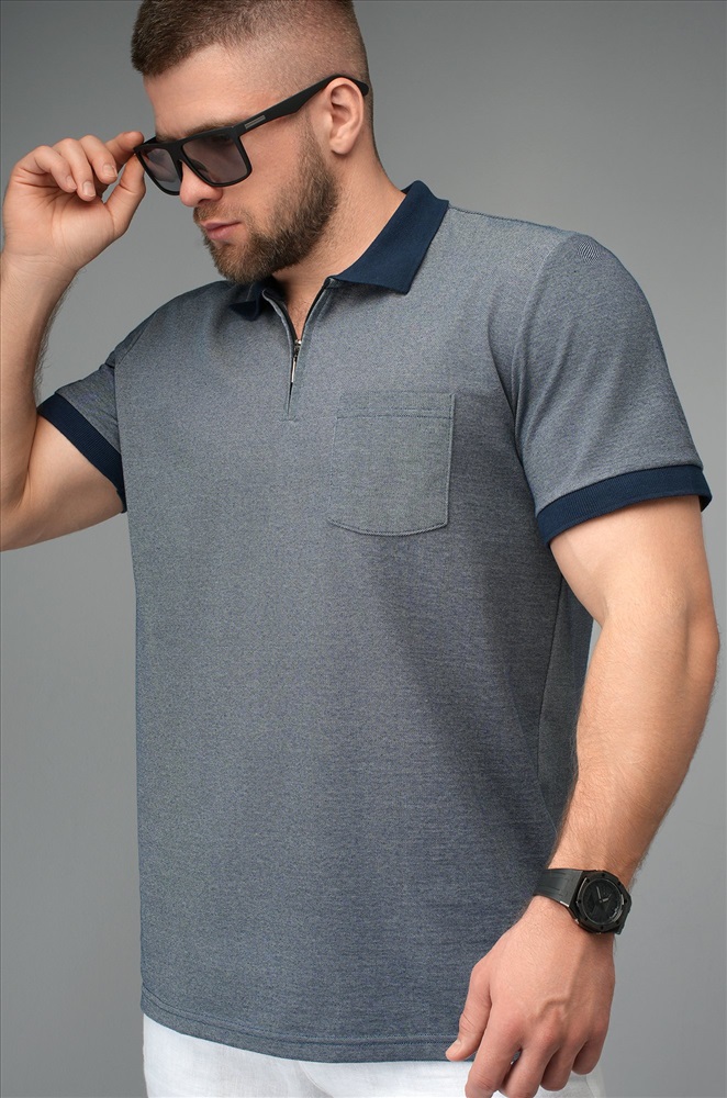 Преимущества: — хлопковый трикотаж пике средней плотности 180 г/м2; — эффектная текстура ткани; — облегающий крой подчёркивает фигуру; — лаконичный воротник на молнии и нагрудный карман; — воротник и манжеты чёрного цвета создают выразительный акцент; — темно-синее поло на замке подходит для образов в стиле олд мани. Тенниска для мужчин — базовый элемент гардероба. Трикотажное поло для мужчин дополнит как строгие, так и повседневные образы. Модель Артем, его рост 172, параметры: 111-87-98. На нем размер 52.