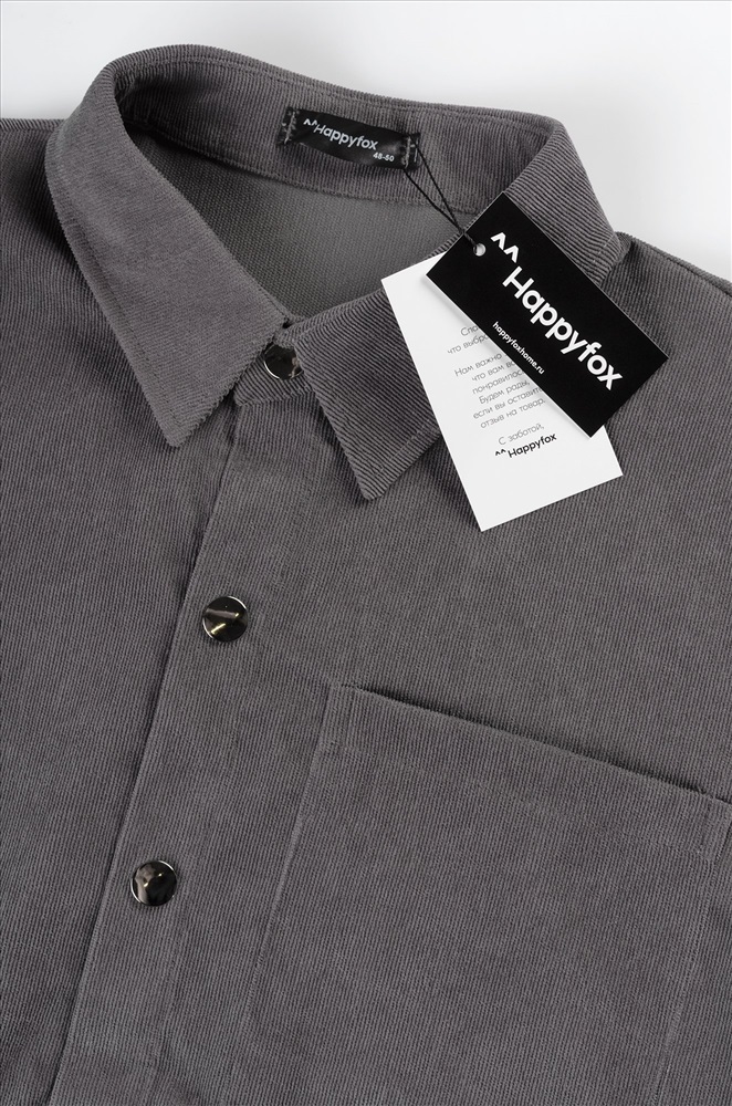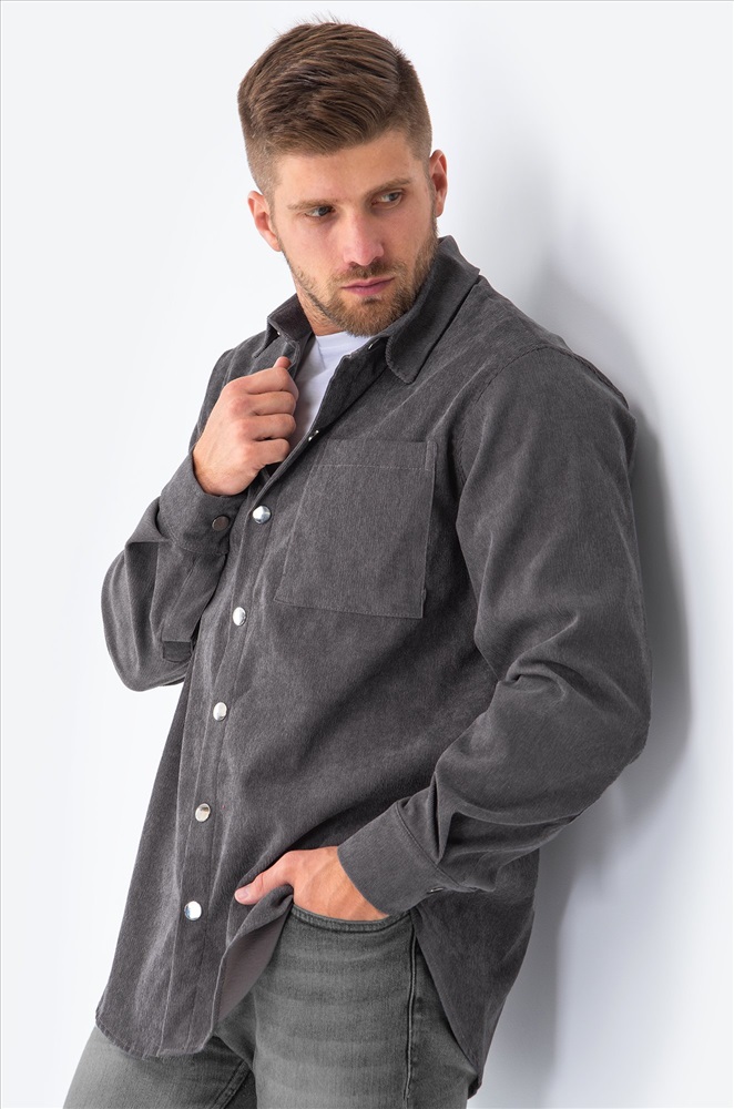 Мужская темно-серая рубашка из мягкого вельвета – отличный способ подчеркнуть свою индивидуальность. Свободный крой подарит уют и комфорт, а карман на груди и застежка на металлические кнопки добавят стильную изюминку в образ. Однотонная вельветовая рубашка с удлиненной спинкой идеальна для прохладной весны и зябкой осени.