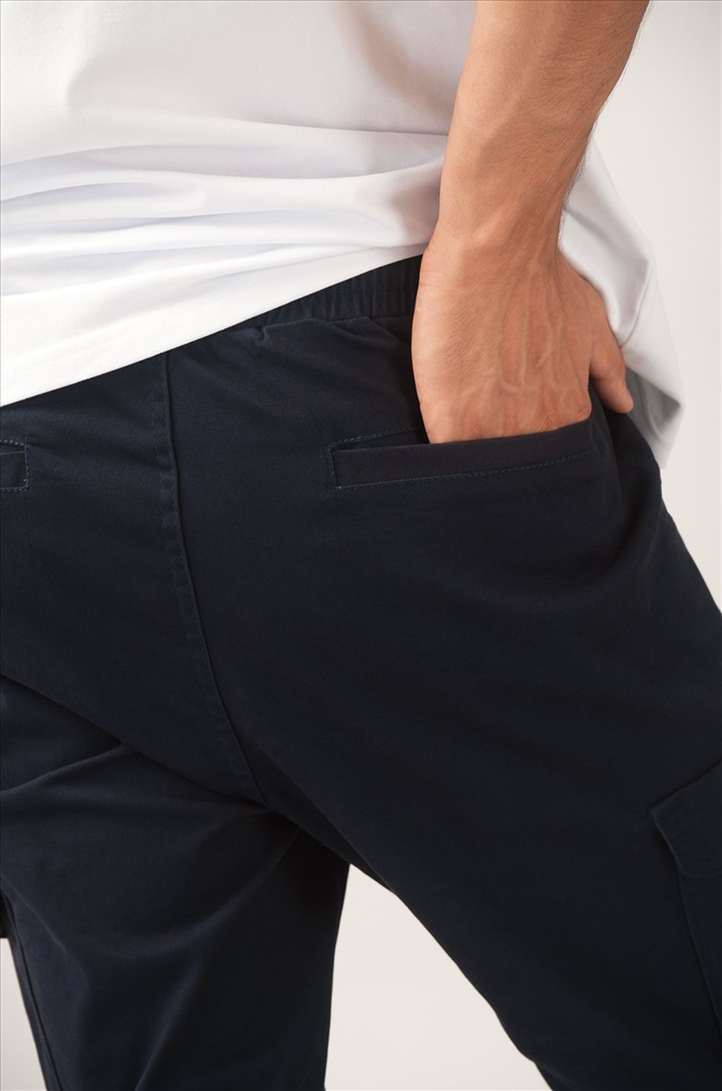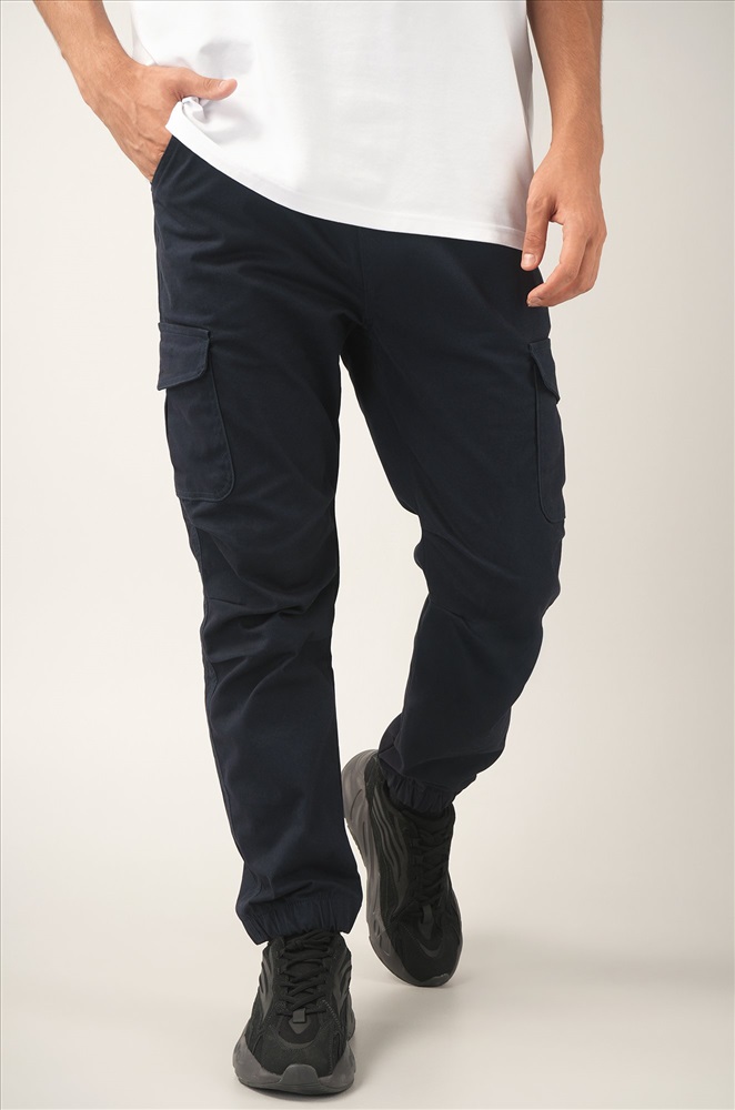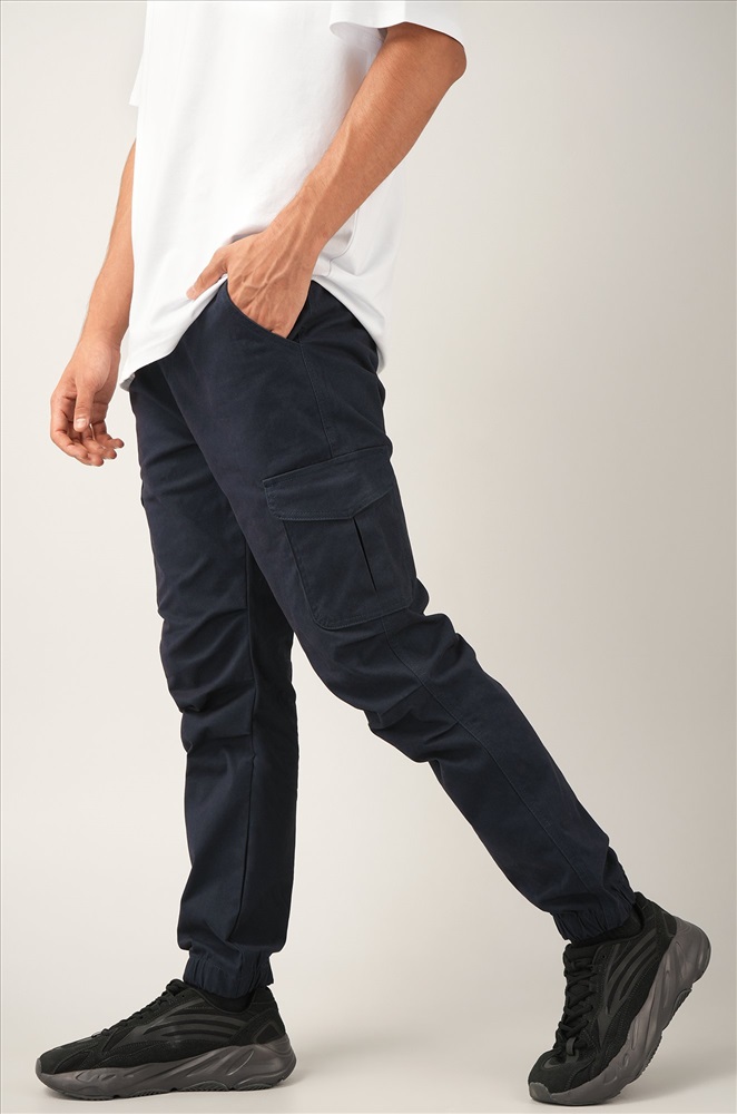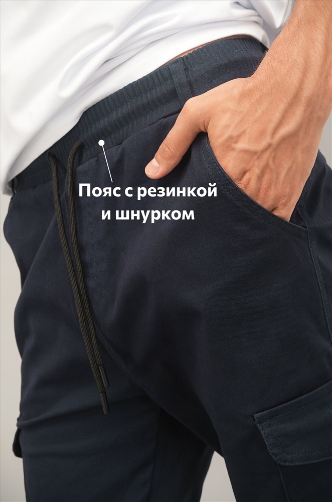 Темно-синие мужские брюки джоггеры в стиле карго — универсальный выбор для динамичных и уверенных образов. Практичные и удобные, они легко вписываются в спортивный стиль и повседневные комбинации.