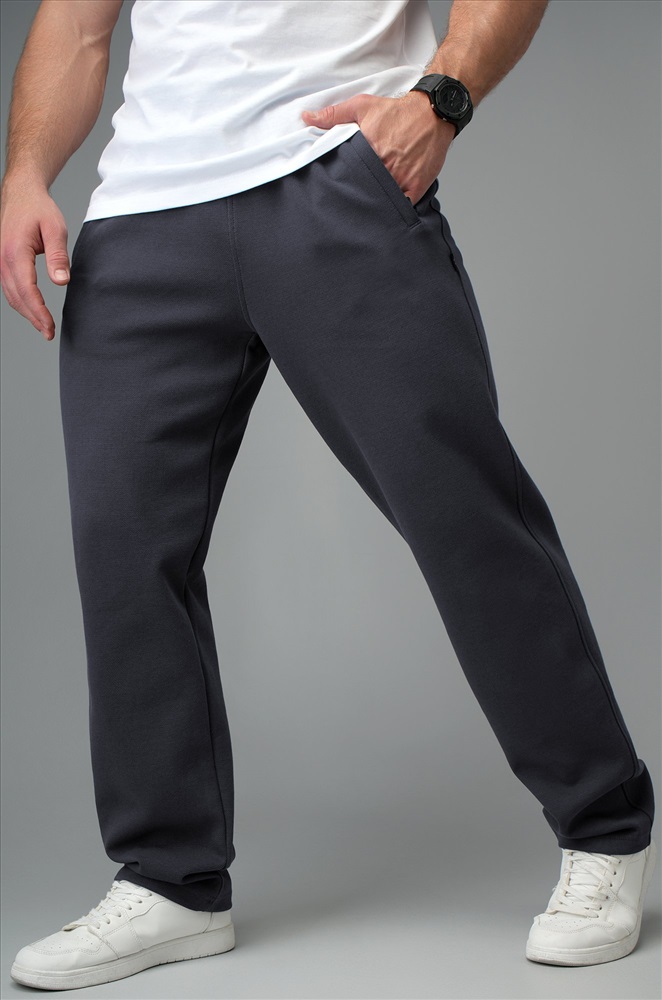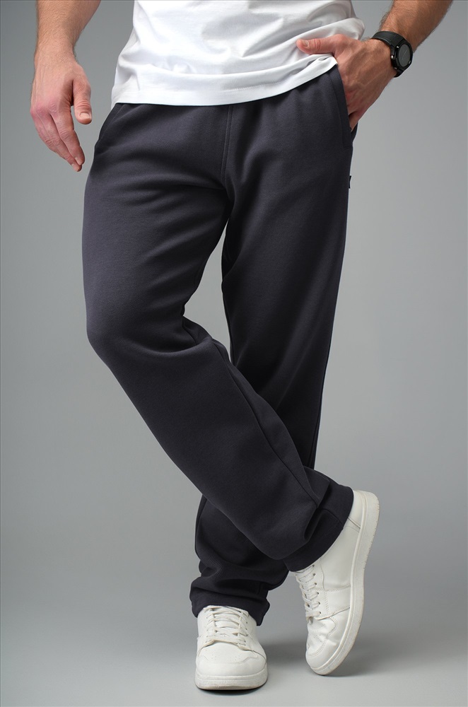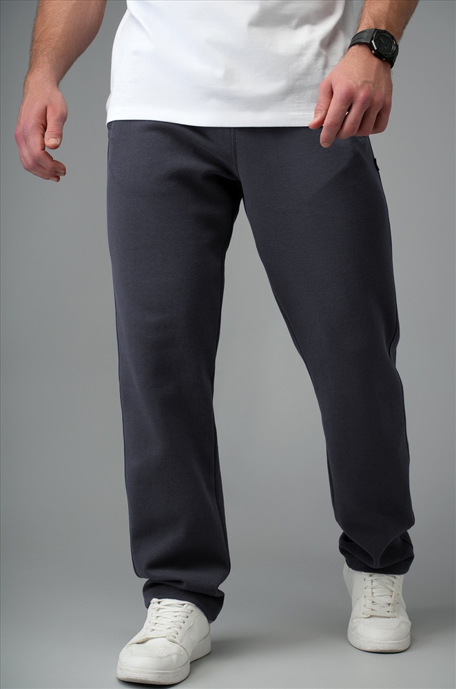 Прямые трикотажные брюки с лаконичным кроем и скрытым шнурком в поясе — это про удобство без компромиссов. Карманы добавляют практичности, а свободная посадка позволяет двигаться без ограничений. То, что нужно для бега, активного отдыха или неспешных дел в городе. Однотонные темно-серые спортивки незаменимы в летних образах. Трико для мужчин подойдут для весны.