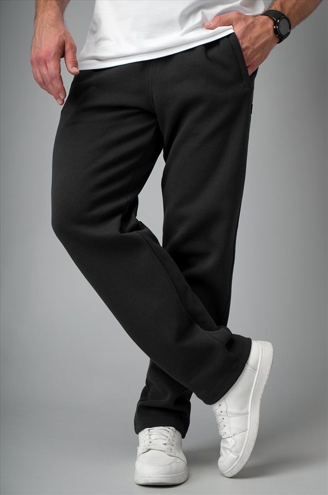 Прямые трикотажные брюки с лаконичным кроем и скрытым шнурком в поясе — это про удобство без компромиссов. Карманы добавляют практичности, а свободная посадка позволяет двигаться без ограничений. То, что нужно для бега, активного отдыха или неспешных дел в городе. Однотонные черные спортивки незаменимы в летних образах. Трико для мужчин подойдут для весны.