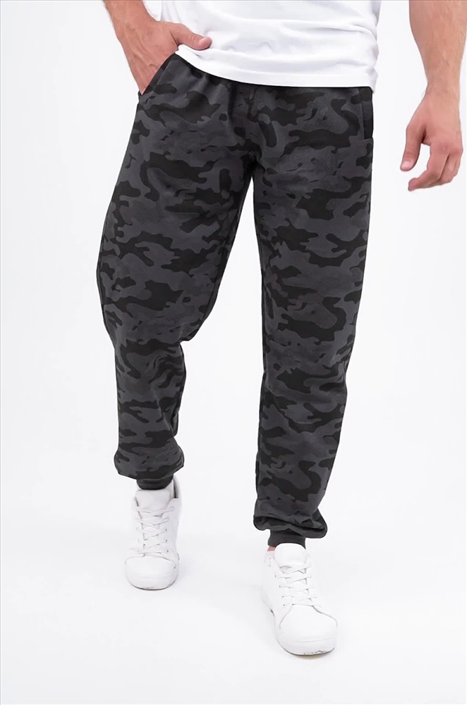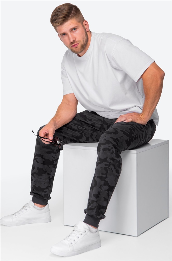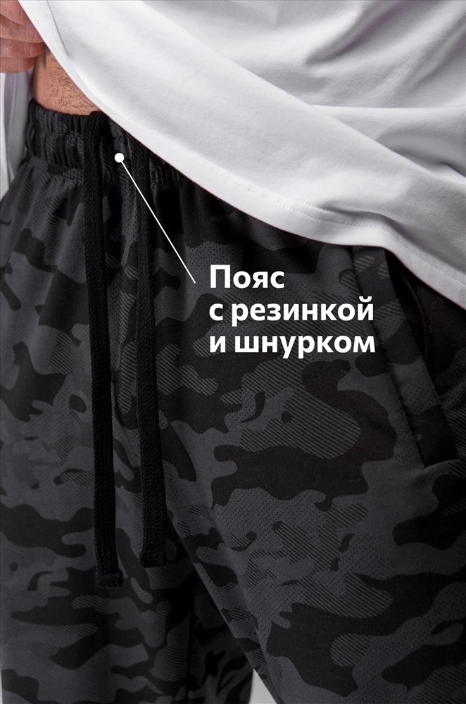 Благодаря добавлению полиэстера в ткань брюки из футера двухнитки мягкие и прочные, что делает их идеальным выбором для активного отдыха, страйкбола и занятий спортом. Спортивные джоггеры выполнены в графитовом цвете с рисунком в стиле милитари.