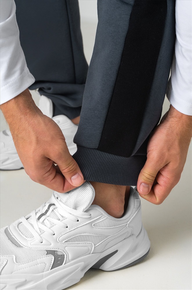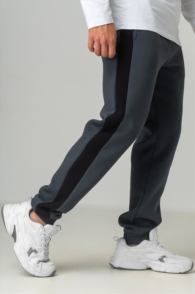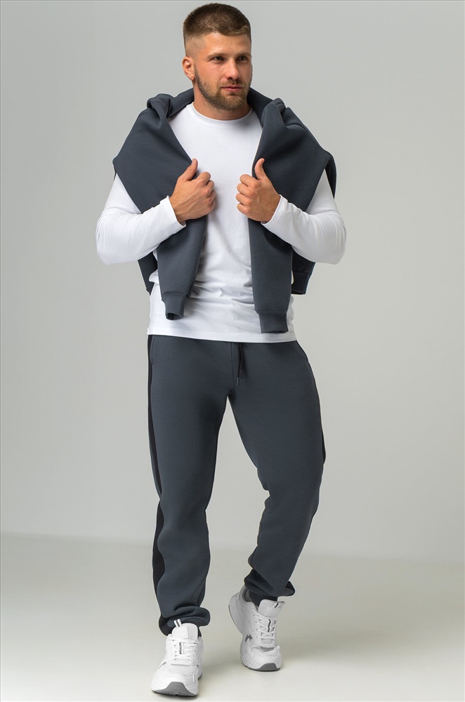 — темно-серые штаны с черными легко вписываются в уличный стиль и кэжуал.