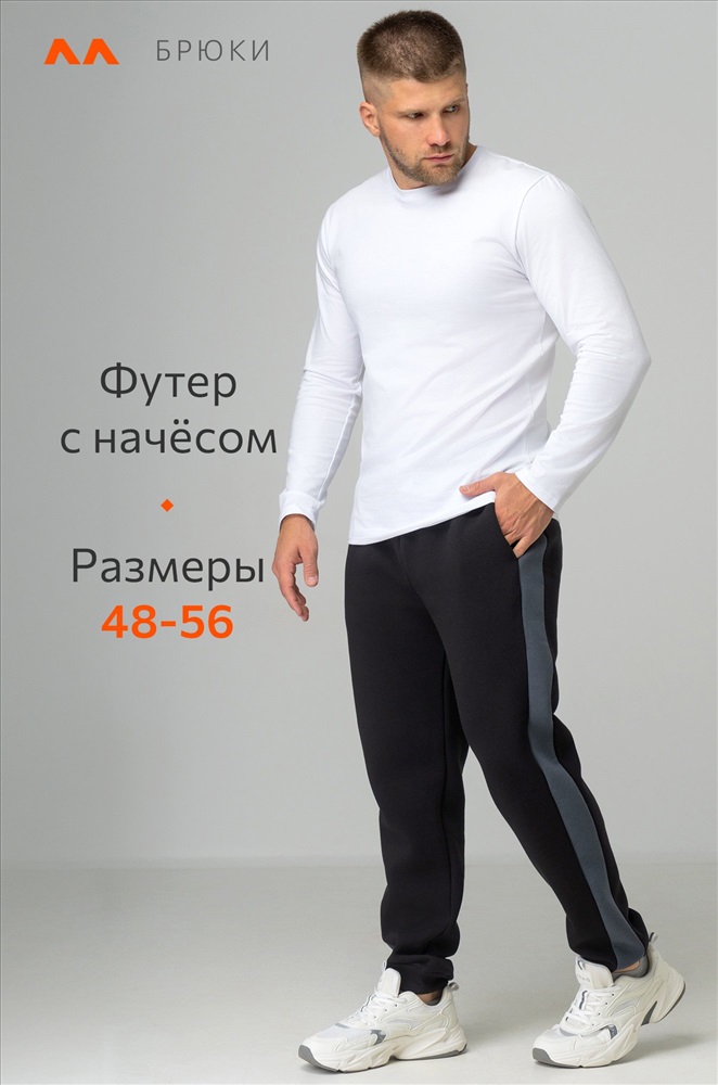 Мужские брюки с начёсом – практичный и стильный вариант для осени и зимы. Утепленные штаны из хлопкового футера с начесом подарят тепло и комфорт во время прогулок и активного отдыха.