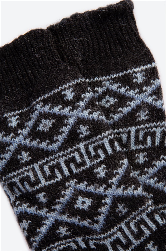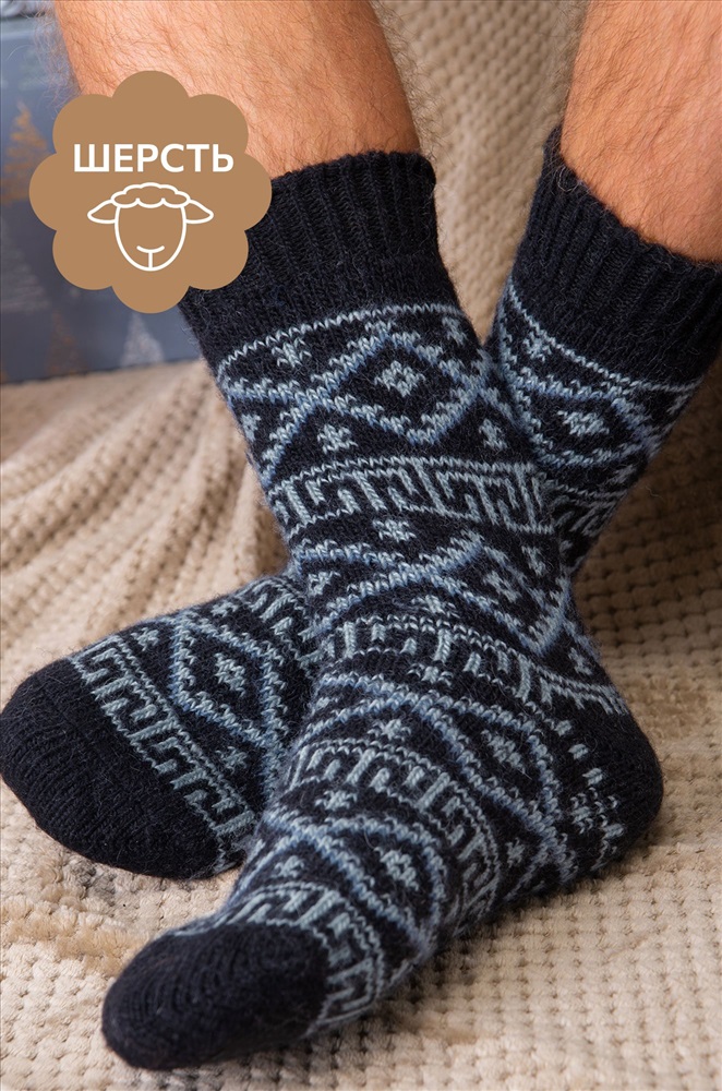 Теплые шерстяные носки с узорами — идеальный способ добавить хорошее настроение и уют в зимние дни. Высокие мужские носки подарят тепло и комфорт, независимо от того, как холодно за окном. Длинные носки представлены в черном цвете и украшены геометрическим узором ромбы.