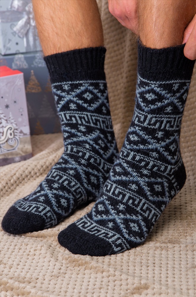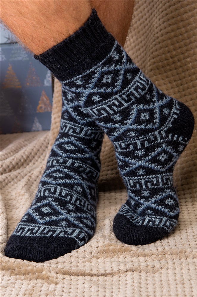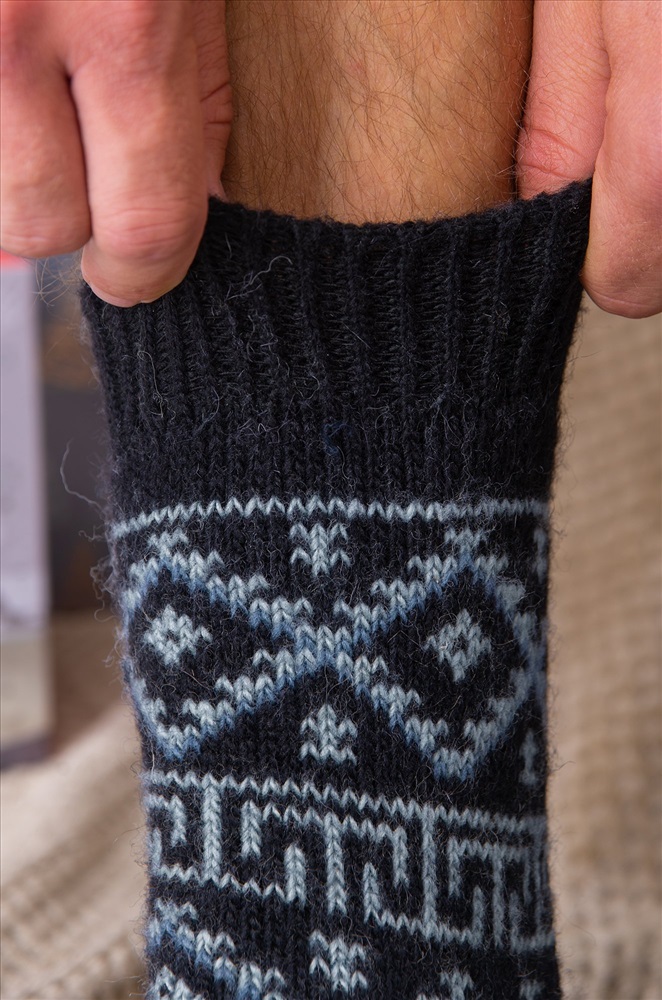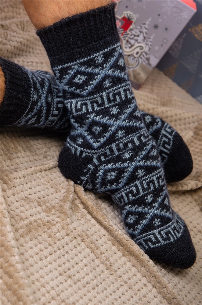 Широкая мягкая резинка обеспечивает идеальную посадку и дополнительное тепло. Рисунок с орнаментом не только украшает, но и делает эти удлиненные носки для мужчин отличным выбором для подарка на Новый год или Рождество.