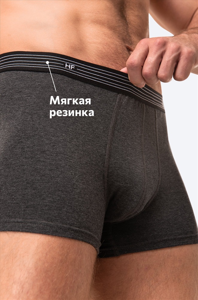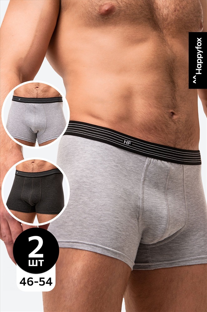 Набор мужских трусов выполнен из хлопка с добавлением эластана. В комплекте 2 шт. трусов: темно-серые и оттенка серый меланж.