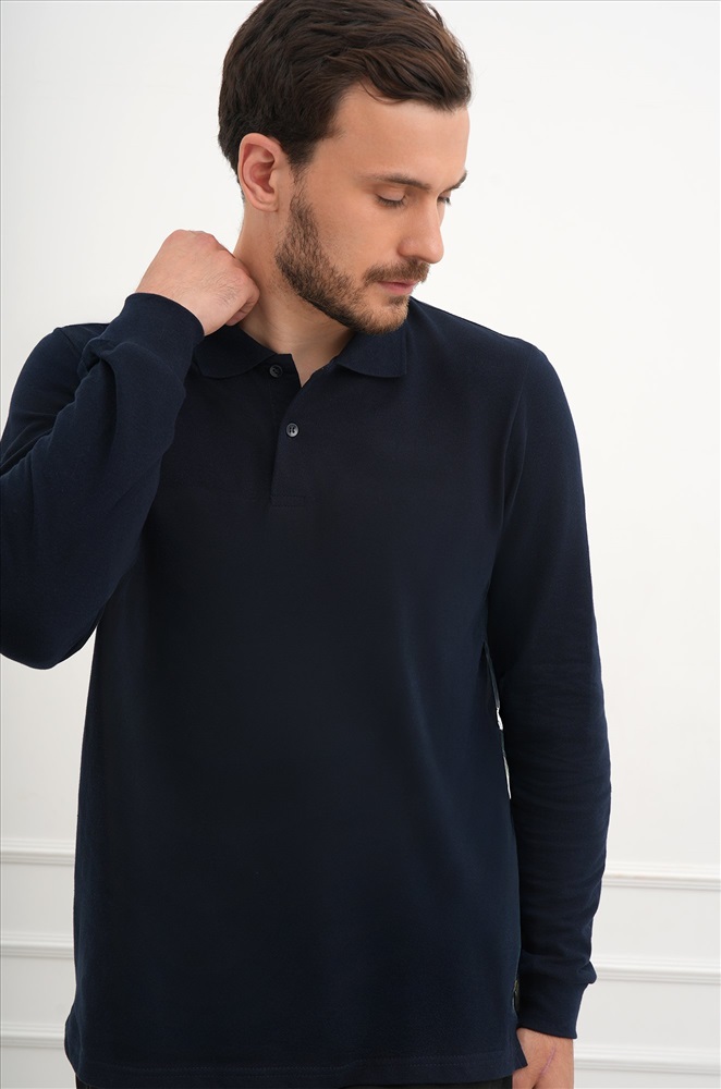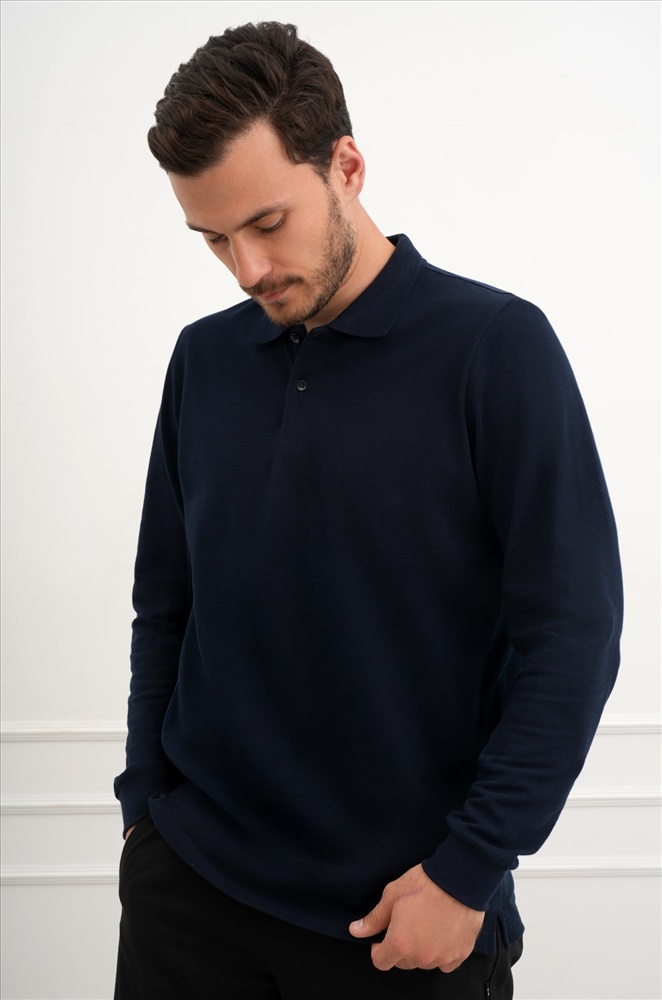 Темно-синий лонгслив поло — лаконичный фаворит мужского гардероба, который всегда к месту. Идеальный баланс между комфортом и стильным минимализмом для повседневных образов.