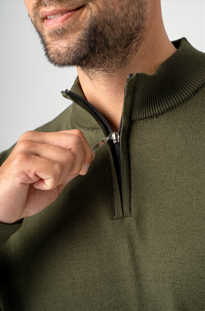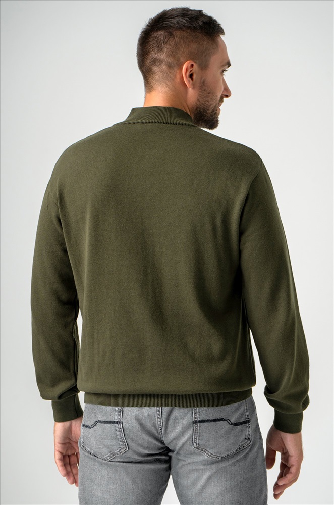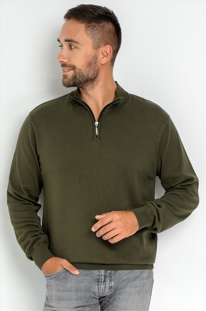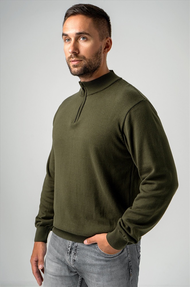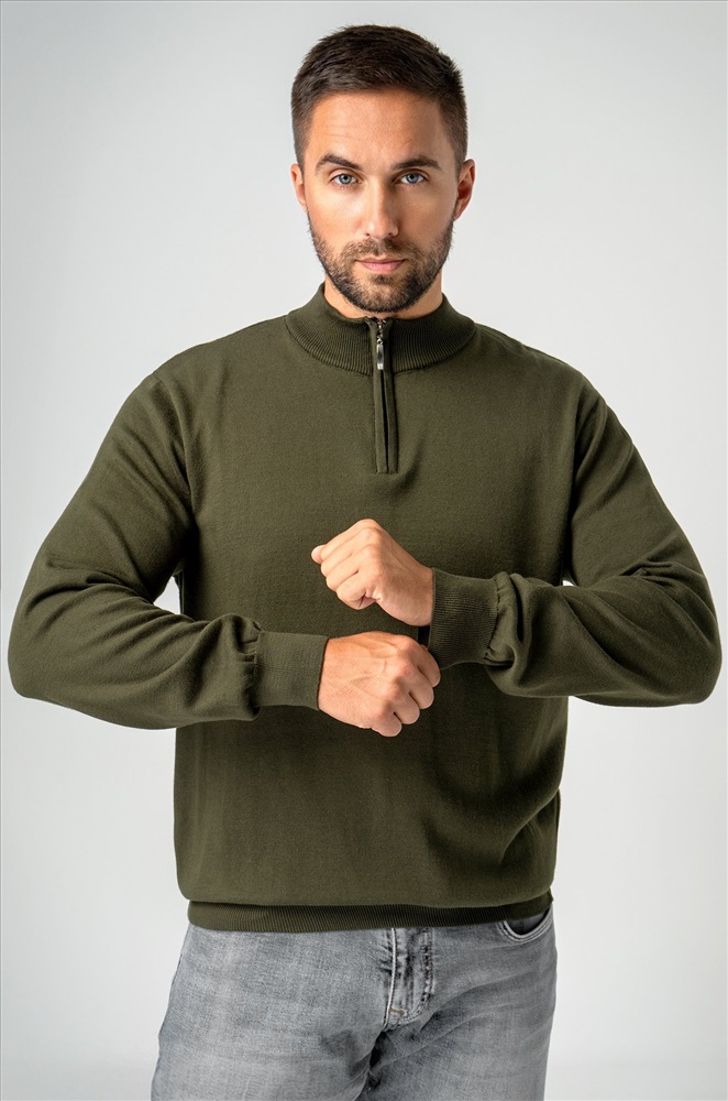 Мужской джемпер цвета хаки станет незаменимой частью вашего гардероба на осень и весну. Демисезонный свитер создан для мужчин, которые ценят качество и универсальность. Прямой крой, ворот стойка с застежкой на молнию добавляют классический штрих, делая его подходящим как для повседневных, так и для более официальных образов. Сочетание хлопка и акрила придает мужской водолазке комфорт и долговечность. Вязаный трикотаж отлично сохраняет тепло, делая джемпер теплым и приятным на ощупь. Трикотажное полотно дарит уют и мягкость, а также позволяет телу дышать, что особенно важно в осенний, зимний и весенний периоды. Классический прямой крой и длинные рукава на манжетах делают однотонный джемпер универсальным для любого случая. Воротник-стойка с молнией добавляет современный акцент, сохраняя при этом элегантный вид. Зеленая водолазка легко сочетается с различными стилями, подчеркивая ваш безупречный вкус. Джемпер подходит для мужчин с размером от 48 до 54, что делает его отличным выбором для большинства. Стильный вариант станет надежным спутником в прохладное время года, даря тепло и комфорт в любых ситуациях. Модель Андрей, рост 187 см, параметры 113-95-109 см. На нем размер 54.