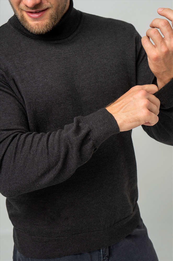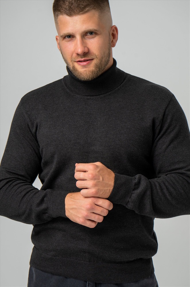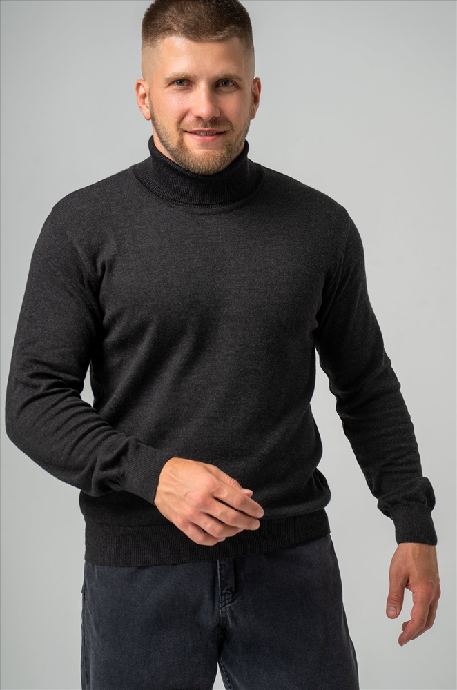 Однотонный мужской джемпер антрацитового цвета идеален для создания повседневных образов.