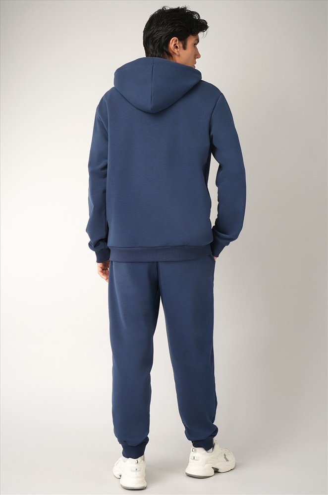 Преимущества: — однотонный костюм со штанами выполнен из плотного футера трехнитки; — костюм с толстовкой с глубоким капюшоном дарит уют и комфорт; — благодаря эластичными манжетам рукава и штанины не задираются при движении; — карман-кенгуру согревает руки в прохладную погоду; — пояс со шнурком позволяет регулировать посадку брюк; — благодаря добавлению полиэстера хлопковый костюм сохраняет форму и цвет даже после многократных стирок; — темно-синий костюм идеален для осени и весны; — спортивный костюм с брюками подойдет для пробежек и прогулок. Трикотажный костюм из хлопка идеален для осенних и весенних дней.