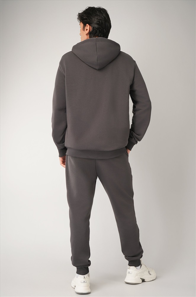 Преимущества: — однотонный темно-серый костюм со штанами выполнен из плотного футера трехнитки; — костюм с толстовкой с глубоким капюшоном дарит уют и комфорт; — благодаря эластичными манжетам рукава и штанины не задираются при движении; — карман-кенгуру согревает руки в прохладную погоду; — пояс со шнурком позволяет регулировать посадку брюк; — благодаря добавлению полиэстера хлопковый костюм сохраняет форму и цвет даже после многократных стирок; — костюм графитового цвета идеален для осени и весны; — спортивный костюм с брюками подойдет для пробежек и прогулок. Трикотажный костюм из хлопка идеален для осенних и весенних дней.
