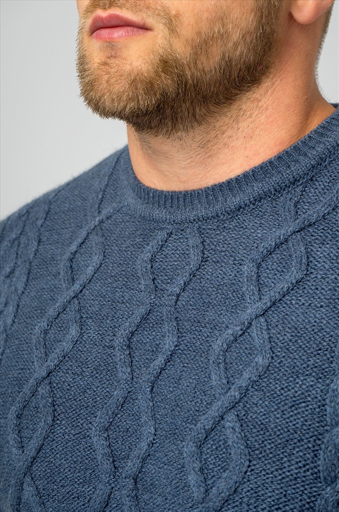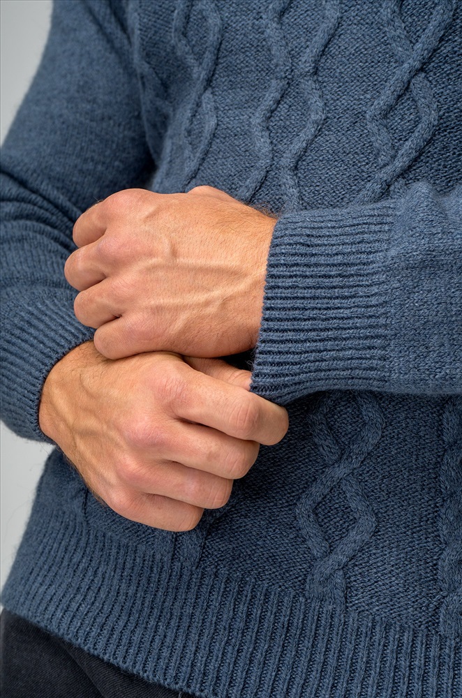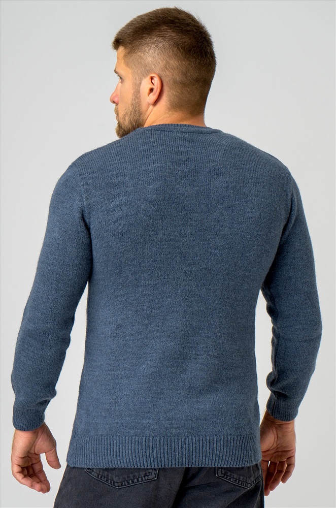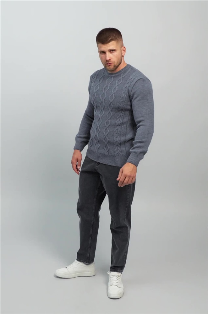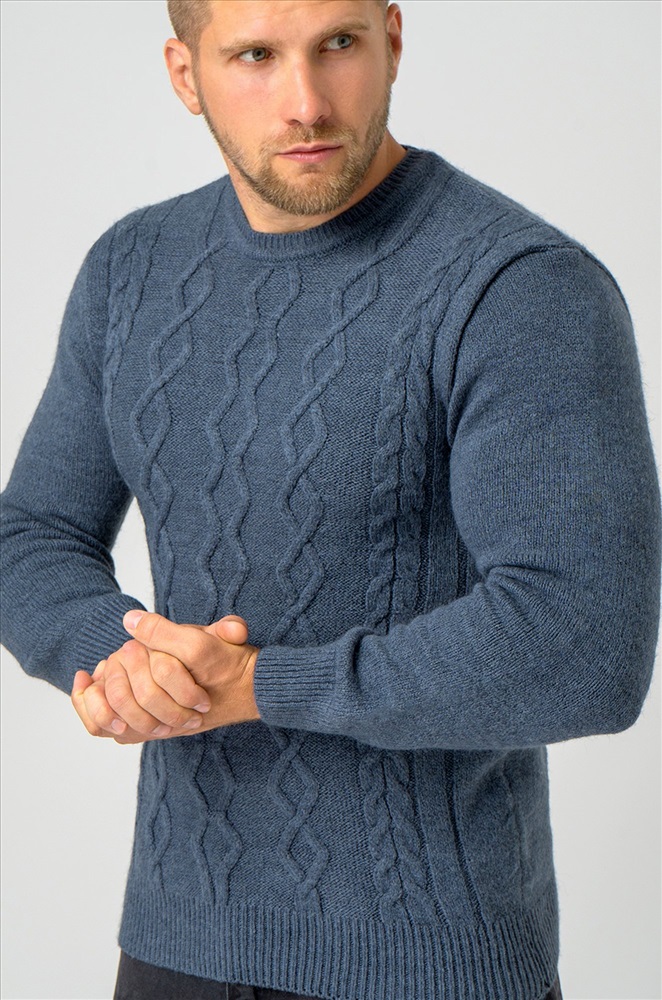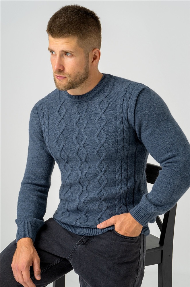 Однотонный мужской джемпер с фактурной вязкой — ключ к безупречному осеннему образу. Свитер оттенка индиго для мужчин выполнен из вязаного трикотажа с добавлением шерсти. Шерсть отличается естественным теплом и невероятной мягкостью. Синий джемпер из мягкой пряжи с добавлением акрила не колется, он невероятно мягкий и приятный к телу. Шерстяной свитер прекрасно сохраняет тепло, она очень прочная, не растягивается и не мнется. В нем комфортно зимой и осенью. Прилегающий фасон не сковывает движения, эластичные манжеты на длинных рукавах и по низу свитера плотно фиксируют его на теле. Круглая горловина создает лаконичный и элегантный силуэт. Базовый джемпер прекрасно подходит для деловых и повседневных образов, хорошо впишется в зимние образы для работы в офисе. Модель Артем, его рост 172, параметры: 107-85-102. На нем размер 52.