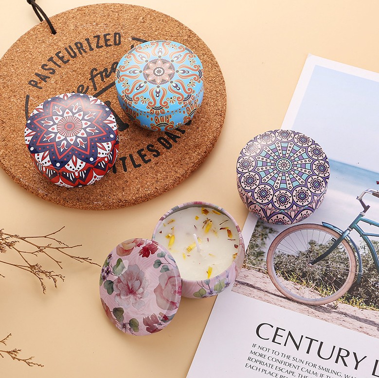 Ароматерапевтические свечи изготовлены из натурального соевого воска с добавлением масел и хлопчатобумажной нити. Они не выветриваются благодаря крышке и поверхность свечи не запылится, пока она стоит на полке. Вес одной свечи 80 гр.