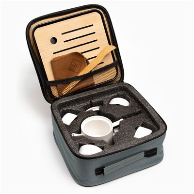 Портативный чайный набор, благодаря компактной сумке с ручкой, удобно брать с собой на природу, в гости, на дачу. Посуда подходит как для торжественных чайных церемоний, так и для повседневного домашнего использования. Изделие изготовлено из прочной керамики, а крышка соединена с ручкой с помощью веревки, чтобы избежать падения.