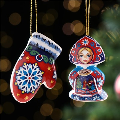 Набор ёлочных игрушек "Машенька и варежка", 6 см