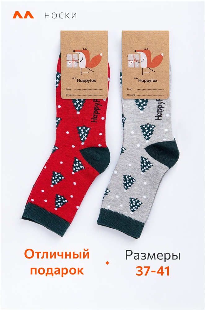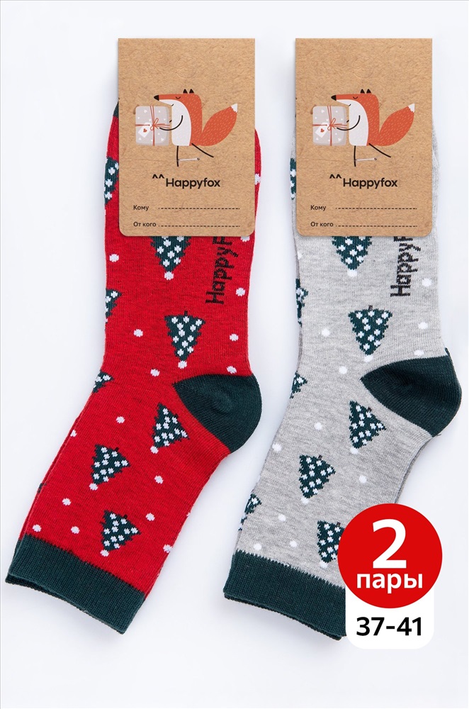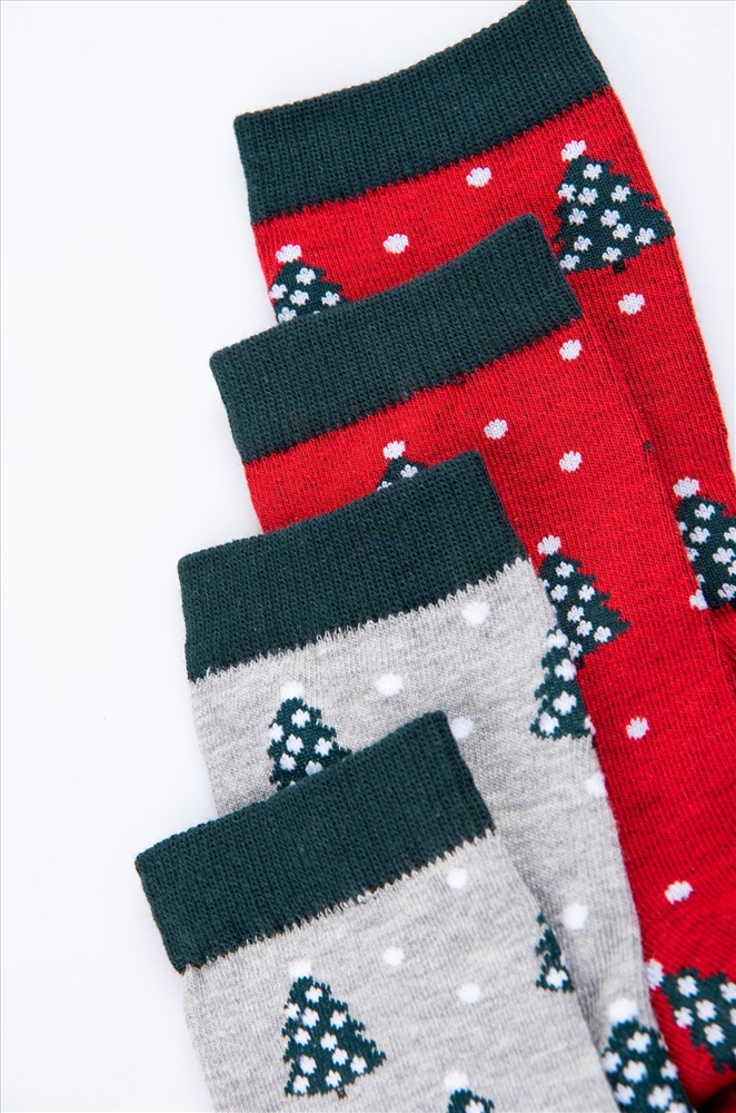 Набор женских носков с новогодним рисунком 2 пары из нежного хлопка – важный атрибут праздничного настроения. Новогодние носки выполнены в сером и красном цветах и украшены узором елки. Высокие носки идеальны в качестве подарка на Новый год и Рождество.