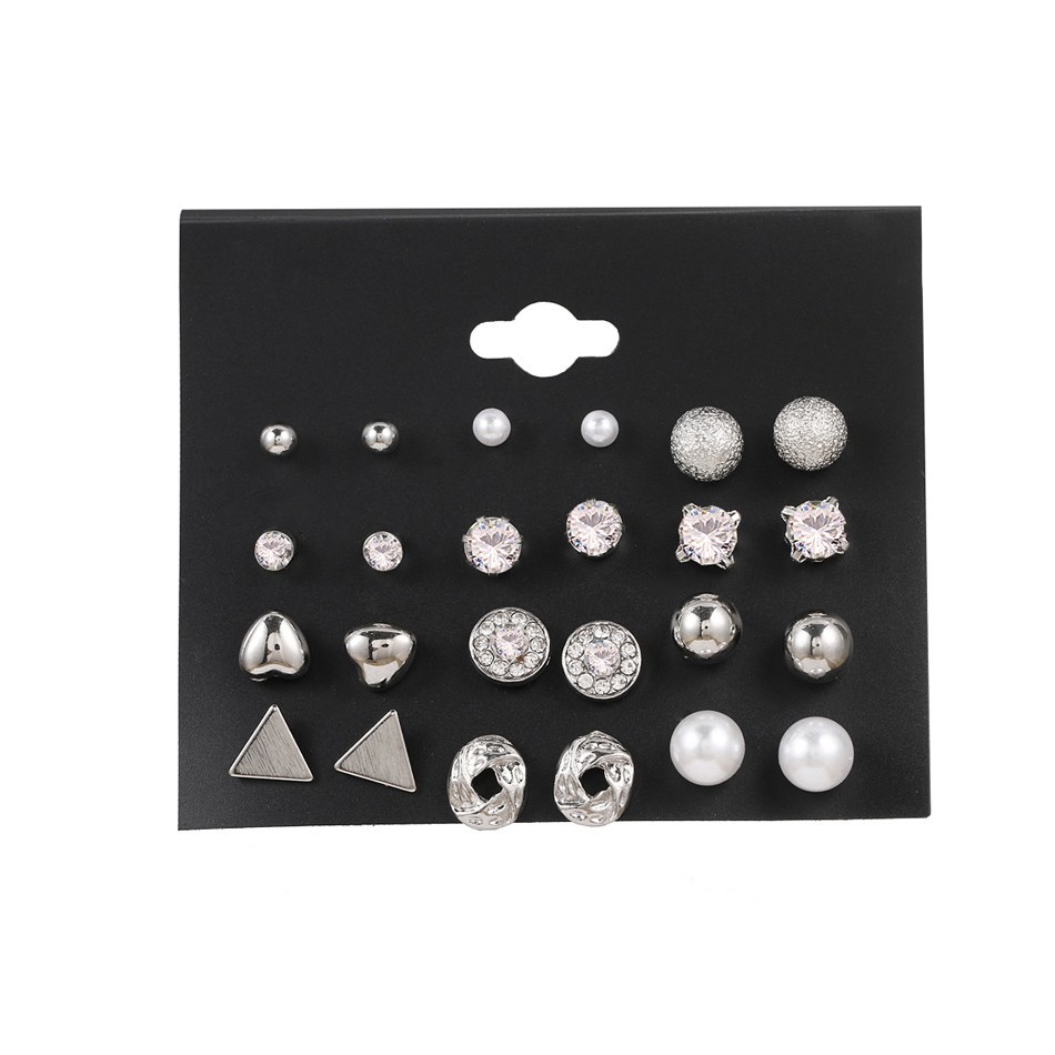 Набор сережек-гвоздиков 12 пар. Цвет: Серебро