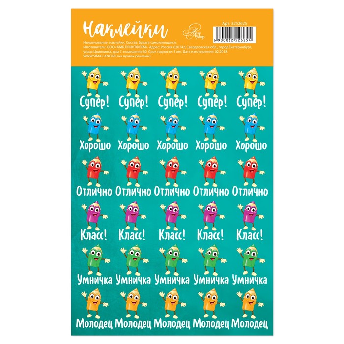 Габариты: 18 x 10,5 x 0,1 см; Производитель: Арт Узор; Страна: Россия; В боксе: 3000 шт; Состав: Бумага самоклеящаяся; Материалы: бумага самоклеящаяся; Фасовка: по 10 шт; Индивидуальная упаковка: Пакет; Размер упаковки: 18 см × 10,5 см × 0,1 см; Сертификат: Не подлежит сертификации; Коллекция: Наклейки для школы; Тематика: Детская; Тематика праздника: Универсальная; Материал: Бумага; Вид наклейки: Наклейка-оценка
