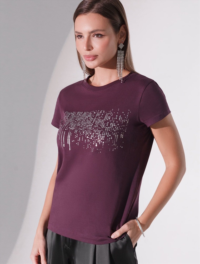 Плотность: 150 Г/м2 Футболка цвета бургунди идеально подходит для вечеринки и создания яркого образа. Оригинальный принт из серебристой фольги придает изделию шикарный вид, который привлечет внимание на любом мероприятии. Модель с круглым вырезом и классическим коротким рукавом обеспечивает свободу движений и комфорт в носке. Такой фасон изделия подходит на большие размеры, гармонично сидит на фигуре и помогает создать легкий акцент на достоинствах. Аккуратный круглый вырез красиво подчеркивает шею и делает образ элегантным, сохраняя актуальность для разных случаев — от рабочих встреч до вечерних прогулок и праздничных мероприятий. Модель изготовлена из премиального хлопка с добавлением эластана. Добавление эластана в состав изделия способствует формоустойчивости. Эта нарядная футболка подходит для создания образа на каждый день и идеально подойдет на выход. Модель не мнется, что делает ее практичным вариантом для активных женщин, которые ценят стиль и удобство. Женская футболка подчеркнет вашу индивидуальность и позволит вам выглядеть привлекательно в любой ситуации. Легкость в уходе и высокая износостойкость делают ее незаменимой вещью в вашем гардеробе. Благодаря сочному дизайну и качественной отделке, футболка легко сочетается с различными элементами гардероба, позволяя создавать уникальные комплекты для разных случаев. Она станет ярким акцентом в вашем гардеробе и подарит уверенность на любом событии. Такой вариант одежды станет отличной базой для стильного и эффектного образа на праздничное событие, корпоратив, Новый Год. Комментарии к товару