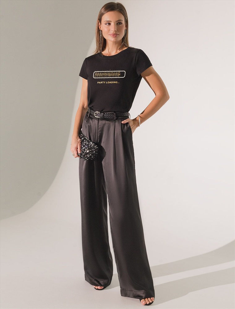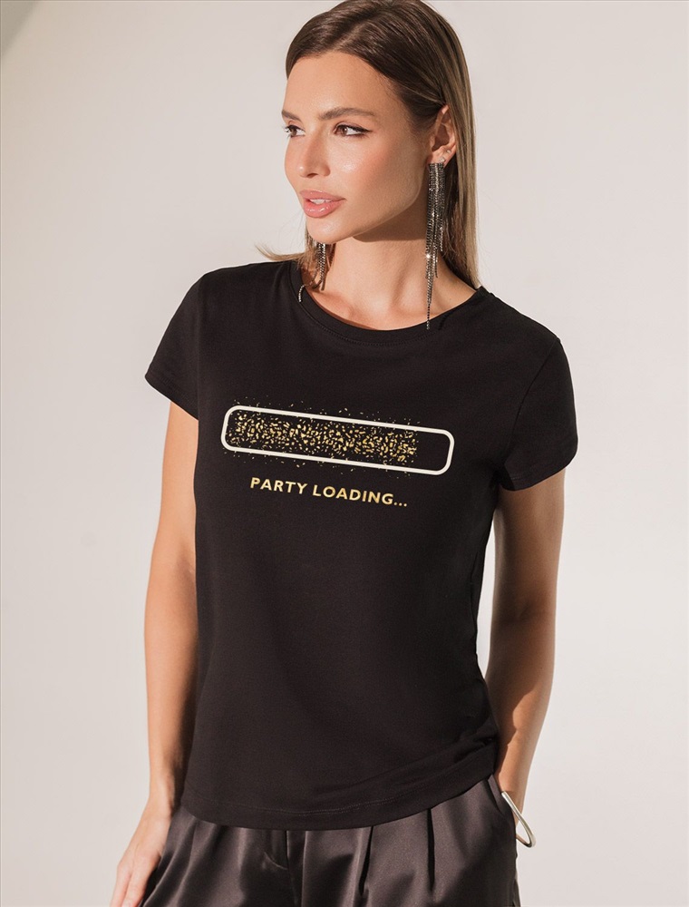 Плотность: 150 Г/м2 Футболка черного цвета идеально подходит для вечеринки и создания яркого образа. Оригинальный принт из золотистой фольги придает изделию шикарный вид, который привлечет внимание на любом мероприятии. Модель с круглым вырезом и классическим коротким рукавом обеспечивает свободу движений и комфорт в носке. Такой фасон изделия подходит на большие размеры, гармонично сидит на фигуре и помогает создать легкий акцент на достоинствах. Аккуратный круглый вырез красиво подчеркивает шею и делает образ элегантным, сохраняя актуальность для разных случаев — от рабочих встреч до вечерних прогулок и праздничных мероприятий. Модель изготовлена из премиального хлопка с добавлением эластана. Добавление эластана в состав изделия способствует формоустойчивости. Эта нарядная футболка подходит для создания образа на каждый день и идеально подойдет на выход. Модель не мнется, что делает ее практичным вариантом для активных женщин, которые ценят стиль и удобство. Женская футболка подчеркнет вашу индивидуальность и позволит вам выглядеть привлекательно в любой ситуации. Легкость в уходе и высокая износостойкость делают ее незаменимой вещью в вашем гардеробе. Благодаря сочному дизайну и качественной отделке, футболка легко сочетается с различными элементами гардероба, позволяя создавать уникальные комплекты для разных случаев. Она станет ярким акцентом в вашем гардеробе и подарит уверенность на любом событии. Такой вариант одежды станет отличной базой для стильного и эффектного образа на праздничное событие, корпоратив, Новый Год. Комментарии к товару