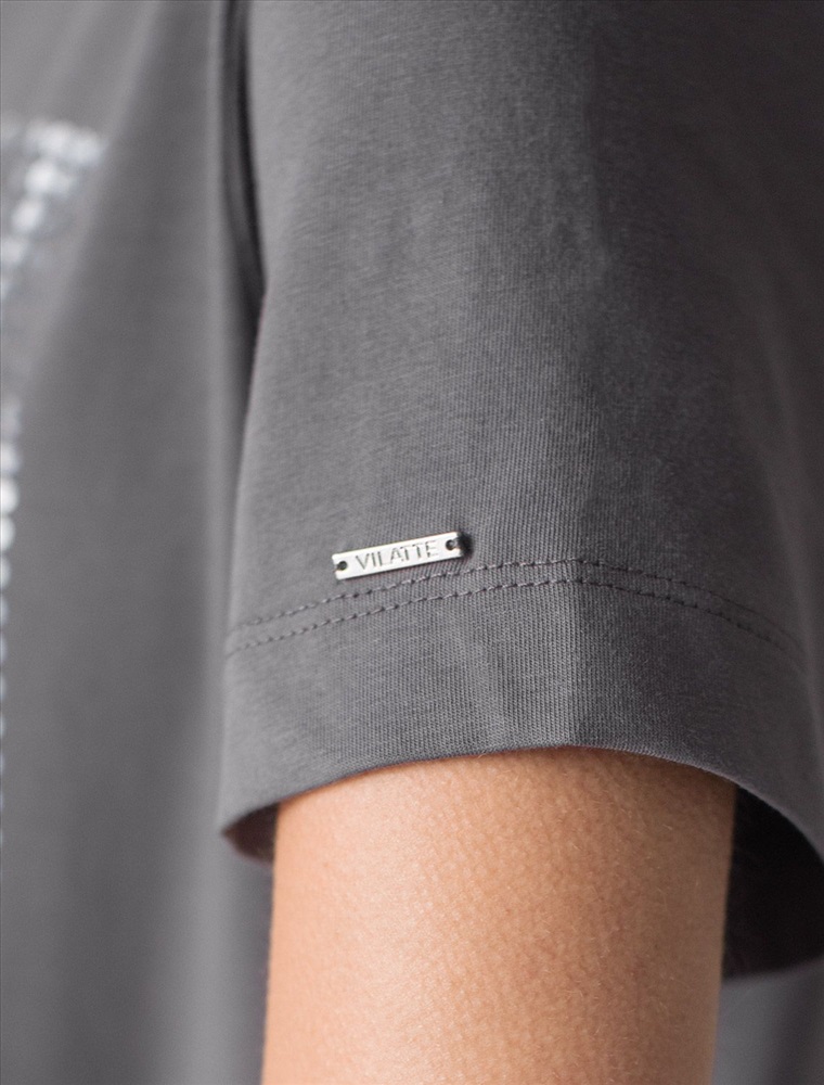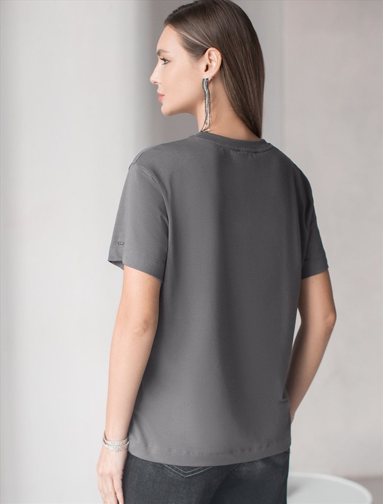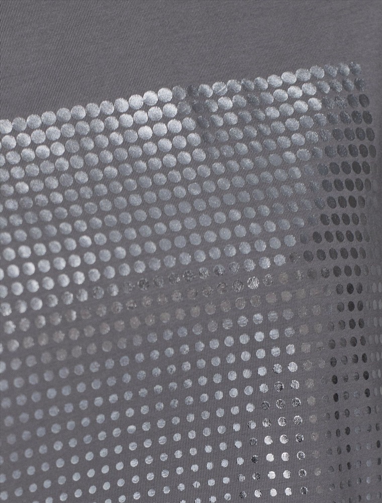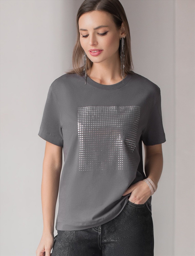 Плотность: 170 Г/м2 Стильная базовая футболка темно-серого цвета с серебристым принтом фольгой выполнена из плотного хлопка с эластаном для комфортной посадки на любую фигуру. Прямая футболка классического кроя с круглым вырезом, прекрасно подходит для разных типов фигуры, в том числе и на большие размеры. Мягкость хлопка вместе с небольшой долей эластана гарантирует идеальную посадку и свободу движений. Легкая натуральная дышащая ткань премиального качества делает футболку с коротким рукавом идеальным вариантом для повседневной носки дома, на работу или офис. Однотонная футболка дополнена авторским аккуратным принтом с минималистичной надписью, который придает праздничный и элегантный вид без лишней вычурности. Блестящий принт аккуратно украшает, добавляя изысканный акцент и создавая легкий мерцающий эффект. Эта эффектная футболка станет отличным выбором на праздник, подчеркивая образ сияющей и уверенной в себе девушки или женщины. Если вы ищете комфортный и одновременно привлекательный наряд для особых моментов, эта футболка станет надежным решением, подчеркивающим вашу индивидуальность и вкус. Комментарии к товару