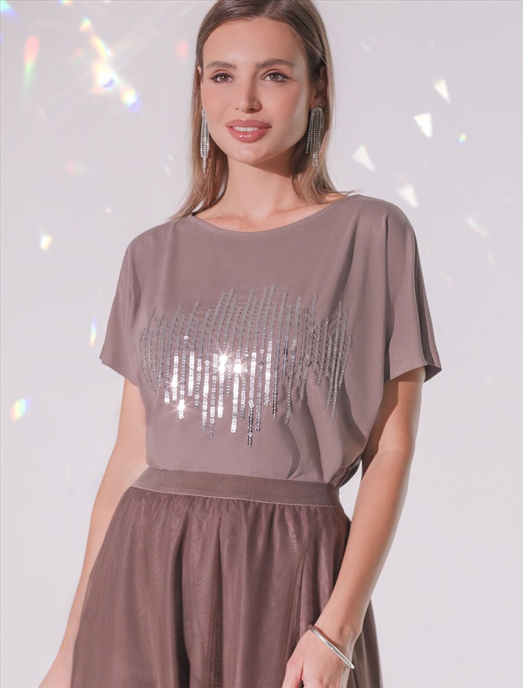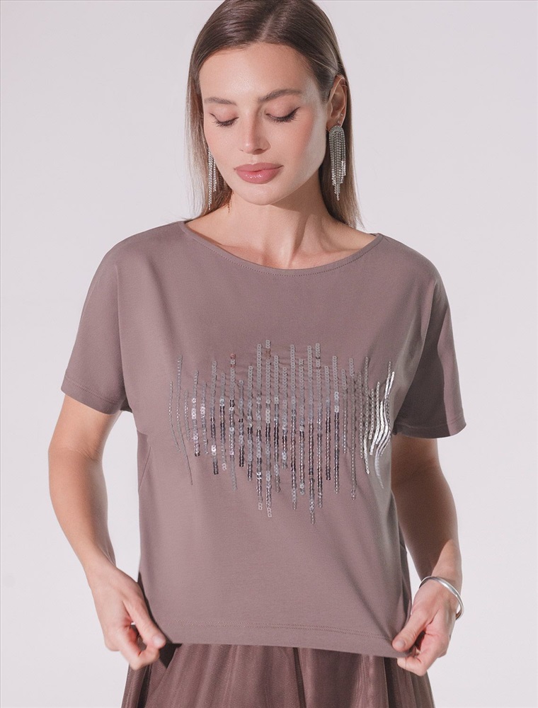 Плотность: 150 Г/м2 Футболка кофейного цвета идеально подходит для вечеринки и создания яркого образа. Оригинальный принт из блестящих пайеток в виде дождика придает изделию шикарный вид, который привлечет внимание на любом мероприятии. Модель с вырезом лодочка и цельнокроеным рукавом обеспечивает свободу движений и комфорт в носке. Такой фасон изделия подходит на большие размеры, гармонично сидит на фигуре и помогает создать легкий акцент на достоинствах. Благодаря особенностям кроя с цельнокроеным рукавом удается искусно скроет любые возможные недостатки в области плеч и рук, обеспечивая комфортное прилегание без ощущения скованности. Аккуратный вырез лодочка красиво подчеркивает шею и делает образ элегантным, сохраняя актуальность для разных случаев — от рабочих встреч до вечерних прогулок и праздничных мероприятий. Модель изготовлена из премиального хлопка с добавлением эластана. Добавление эластана в состав изделия способствует формоустойчивости. Эта нарядная футболка подходит для создания образа на каждый день и идеально подойдет на выход. Модель не мнется, что делает ее практичным вариантом для активных женщин, которые ценят стиль и удобство. Женская футболка подчеркнет вашу индивидуальность и позволит вам выглядеть привлекательно в любой ситуации. Легкость в уходе и высокая износостойкость делают ее незаменимой вещью в вашем гардеробе. Благодаря сочному дизайну и качественной отделке, футболка легко сочетается с различными элементами гардероба, позволяя создавать уникальные комплекты для разных случаев. Она станет ярким акцентом в вашем гардеробе и подарит уверенность на любом событии. Такой вариант одежды станет отличной базой для стильного и эффектного образа на праздничное событие, корпоратив, Новый Год. Комментарии к товару