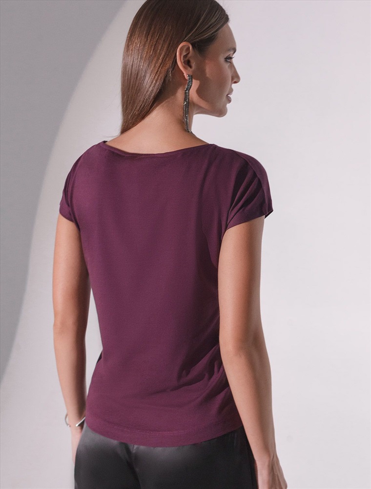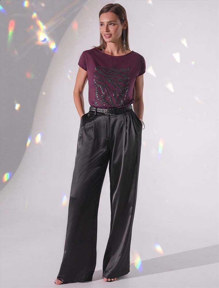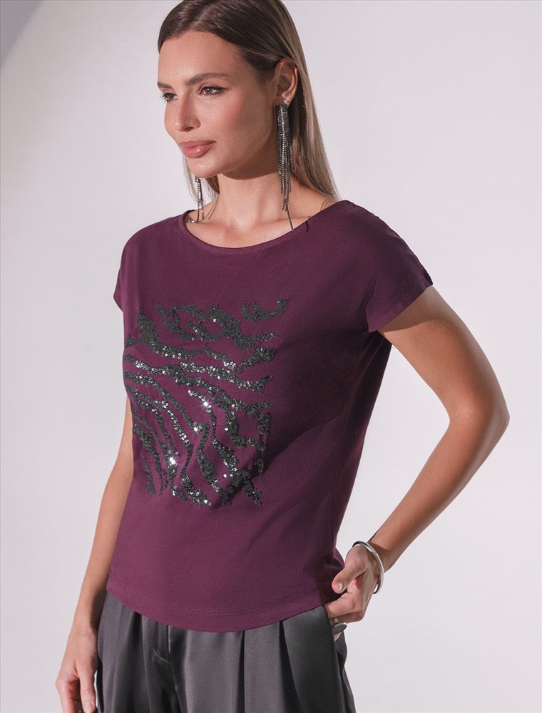 Плотность: 150 Г/м2 Футболка цвета бургунди идеально подходит для вечеринки и создания яркого образа. Оригинальный блестящий принт из пайеток серебристого цвета в виде зебры придает изделию шикарный вид, который привлечет внимание на любом мероприятии. Модель с вырезом лодочка и цельнокроеным коротким рукавом обеспечивает свободу движений и комфорт в носке. Такой фасон изделия подходит на большие размеры, гармонично сидит на фигуре и помогает создать легкий акцент на достоинствах. Аккуратный вырез лодочка красиво подчеркивает шею и делает образ элегантным, сохраняя актуальность для разных случаев — от рабочих встреч до вечерних прогулок и праздничных мероприятий. Модель изготовлена из премиального хлопка с добавлением эластана. Добавление эластана в состав изделия способствует формоустойчивости. Эта нарядная футболка подходит для создания образа на каждый день и идеально подойдет на выход. Модель не мнется, что делает ее практичным вариантом для активных женщин, которые ценят стиль и удобство. Женская футболка подчеркнет вашу индивидуальность и позволит вам выглядеть привлекательно в любой ситуации. Легкость в уходе и высокая износостойкость делают ее незаменимой вещью в вашем гардеробе. Благодаря сочному дизайну и качественной отделке, футболка легко сочетается с различными элементами гардероба, позволяя создавать уникальные комплекты для разных случаев. Она станет ярким акцентом в вашем гардеробе и подарит уверенность на любом событии. Такой вариант одежды станет отличной базой для стильного и эффектного образа на праздничное событие, корпоратив, Новый Год. Комментарии к товару
