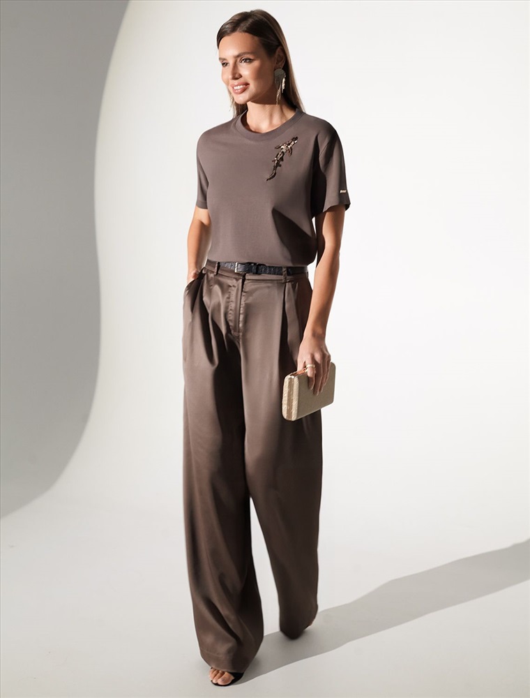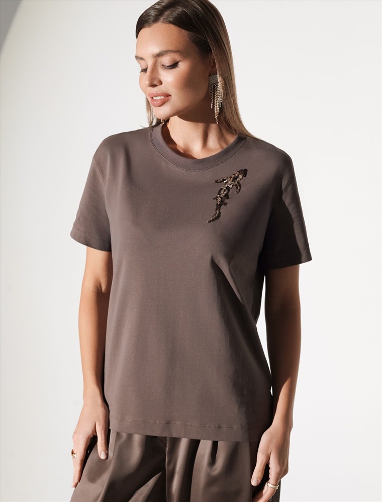 Плотность: 170 Г/м2 Стильная базовая футболка кофейного цвета с принтом пайетками в виде рыбки выполнена из плотного хлопка с эластаном для комфортной посадки на любую фигуру. Прямая футболка классического кроя с круглым вырезом, прекрасно подходит для разных типов фигуры, в том числе и на большие размеры. Мягкость хлопка вместе с небольшой долей эластана гарантирует идеальную посадку и свободу движений. Легкая натуральная дышащая ткань премиального качества делает футболку с коротким рукавом идеальным вариантом для повседневной носки дома, на работу или офис. Однотонная футболка дополнена авторским аккуратным принтом зебра, который придает праздничный и элегантный вид без лишней вычурности. Блестящий анималистичный принт аккуратно украшает, добавляя изысканный акцент и создавая легкий мерцающий эффект. Эта эффектная футболка станет отличным выбором на праздник, подчеркивая образ сияющей и уверенной в себе девушки или женщины. Если вы ищете комфортный и одновременно привлекательный наряд для особых моментов, эта футболка станет надежным решением, подчеркивающим вашу индивидуальность и вкус. Комментарии к товару