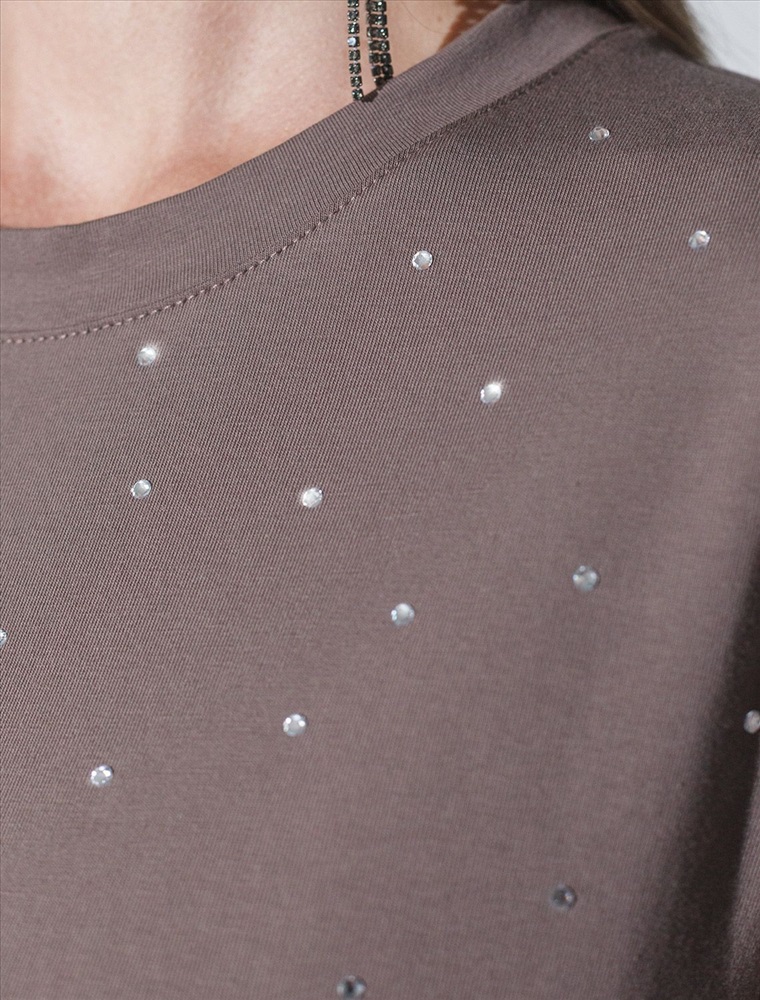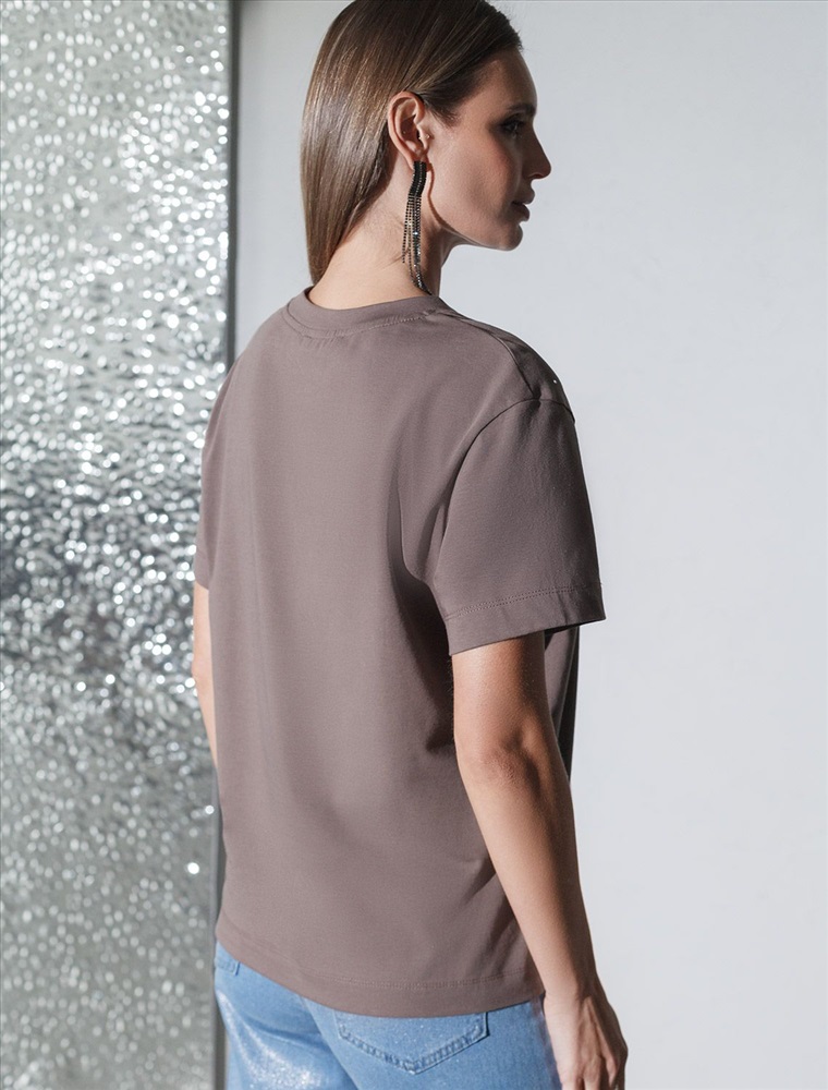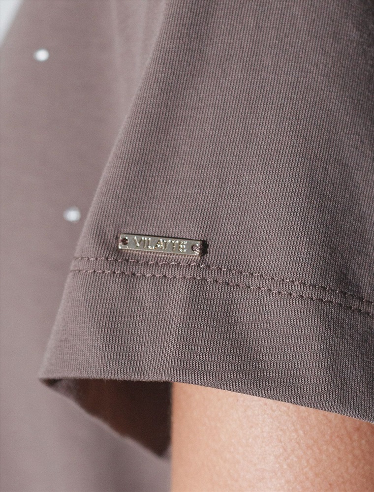 Плотность: 170 Г/м2 Стильная базовая футболка кофейного цвета с принтом стразами выполнена из плотного хлопка с эластаном для комфортной посадки на любую фигуру. Прямая футболка классического кроя с круглым вырезом, прекрасно подходит для разных типов фигуры, в том числе и на большие размеры. Мягкость хлопка вместе с небольшой долей эластана гарантирует идеальную посадку и свободу движений. Легкая натуральная дышащая ткань премиального качества делает футболку с коротким рукавом идеальным вариантом для повседневной носки дома, на работу или офис. Однотонная футболка дополнена авторским аккуратным принтом, который придает праздничный и элегантный вид без лишней вычурности. Блестящий принт в виде россыпи страз аккуратно украшает, добавляя изысканный акцент и создавая легкий мерцающий эффект. Эта эффектная футболка станет отличным выбором на праздник, подчеркивая образ сияющей и уверенной в себе девушки или женщины. Если вы ищете комфортный и одновременно привлекательный наряд для особых моментов, эта футболка станет надежным решением, подчеркивающим вашу индивидуальность и вкус. Комментарии к товару