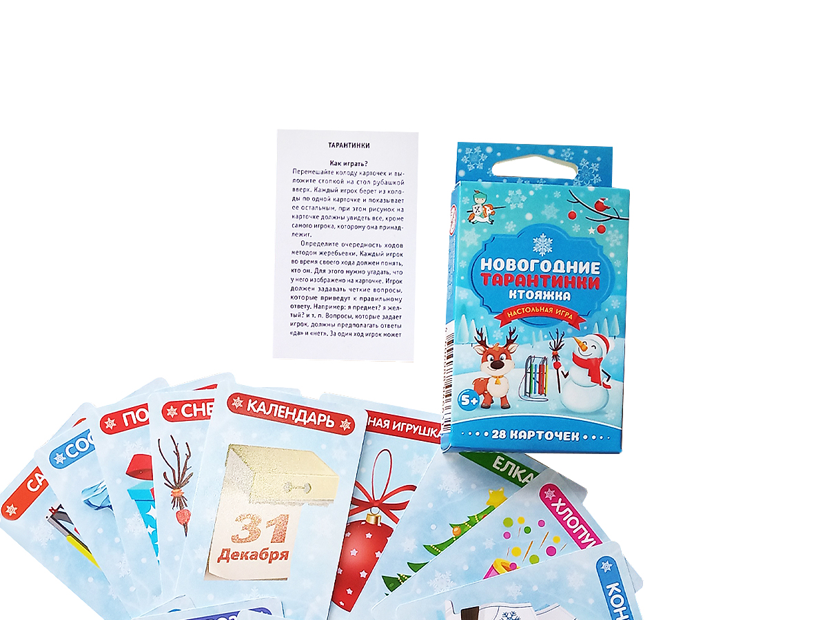 Настольная игра «Новогодние тарантинки» подарит всем участникам яркие эмоции. Вас ждут смех, радость и азарт! Играйте, веселитесь и развивайте логику и аналитические способности.