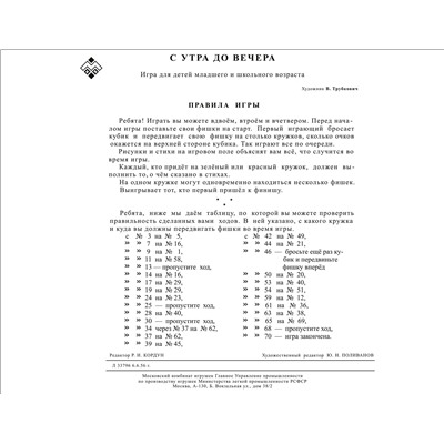 Год издания (оригинал): 1956 Копия детской настольной игры "С утра до вечера" (первая версия игры 1956 года)
