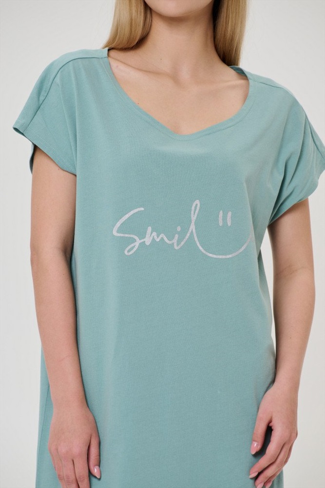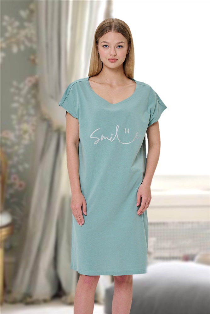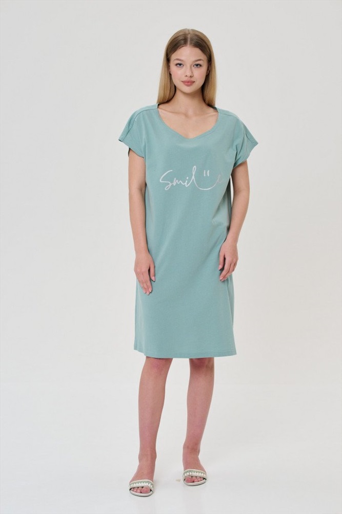 Состав: 100% хб Рост модели на фото, см: 170 Силуэт: свободный Вырез горловины: круглый Тип рукава: спущ.плечо Артикул: 4322-20