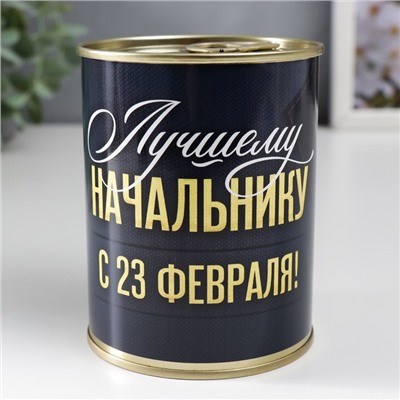Носки в банке "Лучшему начальнику, С 23 Февраля" (внутри носки мужские, цвет чёрный)