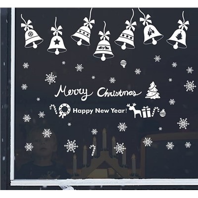 Новогодний стикер декор «Колокольчики» / 83*95 см/ Виниловые наклейки третьего поколения. Увлекательное занятие для всей семьи — создать уютный дизайн собственными руками. Экологически чистый материл в использовании / Многоразовая/ Применение: обои, краска, стекло, мебельная панель, пластик, металл /Размер на бумаге 60*45 см Комментарии к товару
